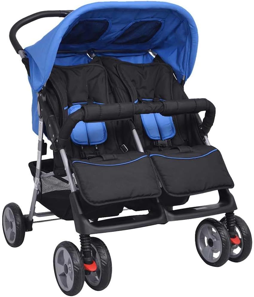 Poussette Double pliable vidaXL – Bleu & Noir, 6-36 mois