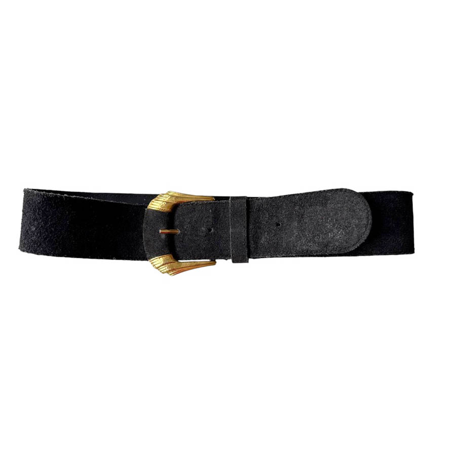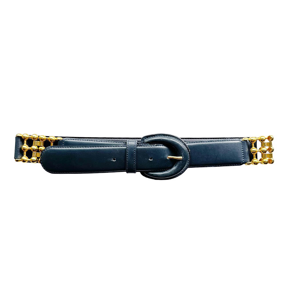 Ceinture noire cuir et or 80s