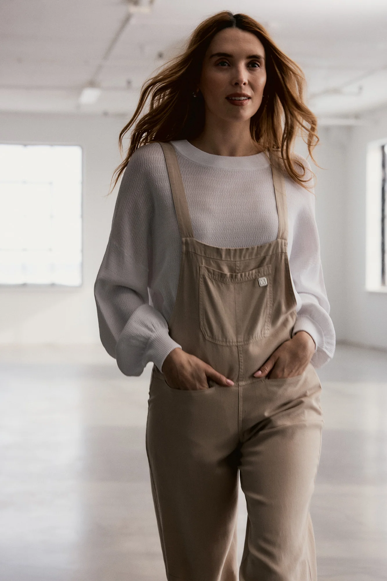 La salopette beige Alexis est une combinaison confortable, décontractée et stylée. Son tissu est doux, ses poches sont pratiques et son design permet de porter les bretelles croisées ou décroisées au dos.