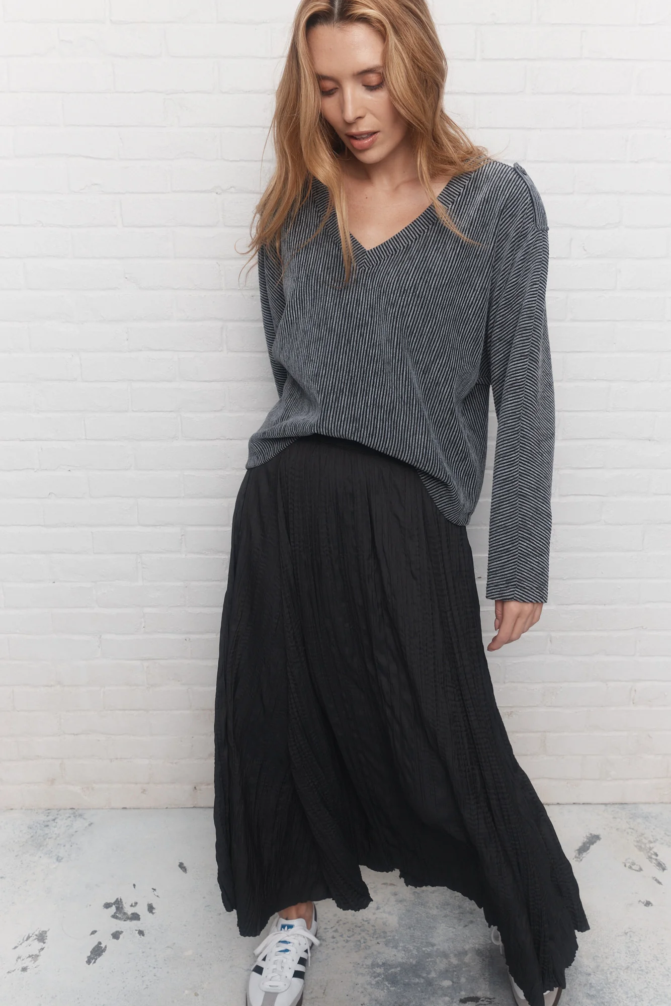- Si vous êtes moins confortable avec les coupes amples, vous pouvez opter pour une taille plus petite afin d’obtenir un effet légèrement plus près du corps.