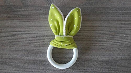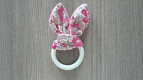 anneau de dentition pour bébéforme lapinun coté coton et l’autre en velour minkee très douxanneau en bois naturel non traité dimension diamètre 5.5 /6cm cm qui permet une bonne prise de mainhauteur total de l’anneau de dentition du bas de l anneau à la pointe des oreilles environ 12/13 cminspiration de la méthode montessori