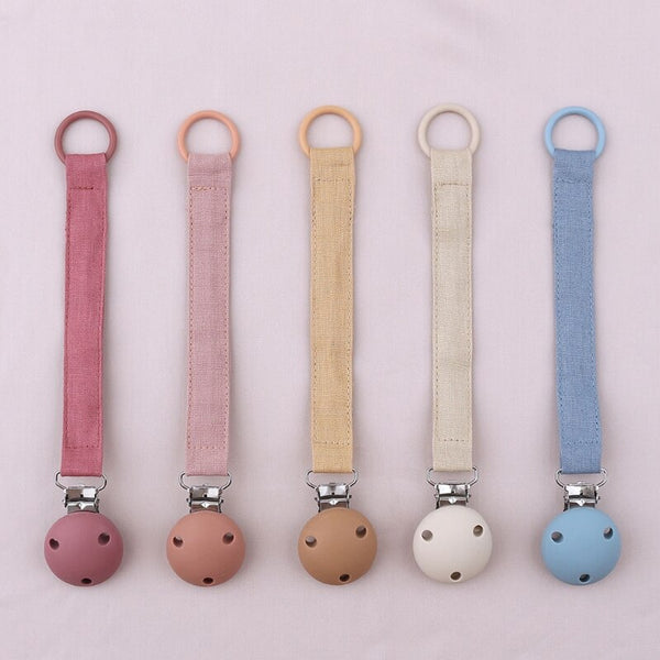 Attache sucette en coton chiné pour adapter chaque tenue de bébé Attaches en silicone et métal pour une sécurité accrue Longueur de 22 cm pour une prise en main facile