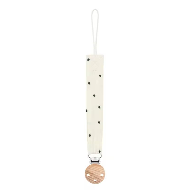 Avec ses motifs de points dans un fond blanc, l’attache sucette points vous permet de maintenir la tétine de votre bébé à portée de main et de ne plus craindre de la perdre.