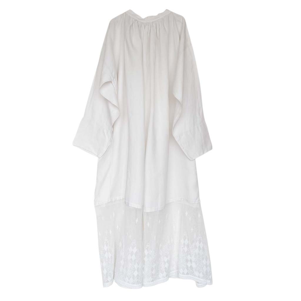 Aube de prêtre dentelle Elephant Paris Vintage Grande robe liturgique 100% pur coton, brodée violet sur tout le bas, se ferme par un lien noué sur le décolleté, deux endroits sont décousus (voir photos) Dimensions : largeur 127 cm longueur 150 cm