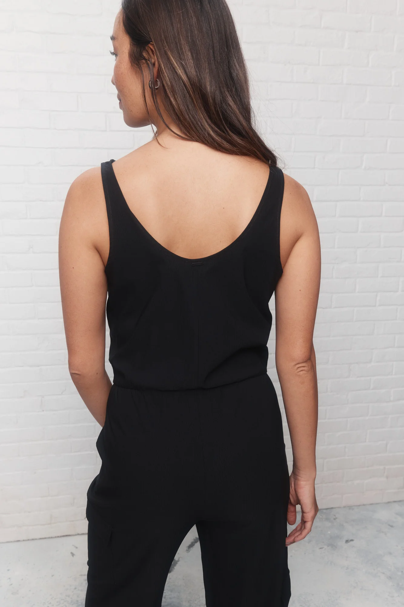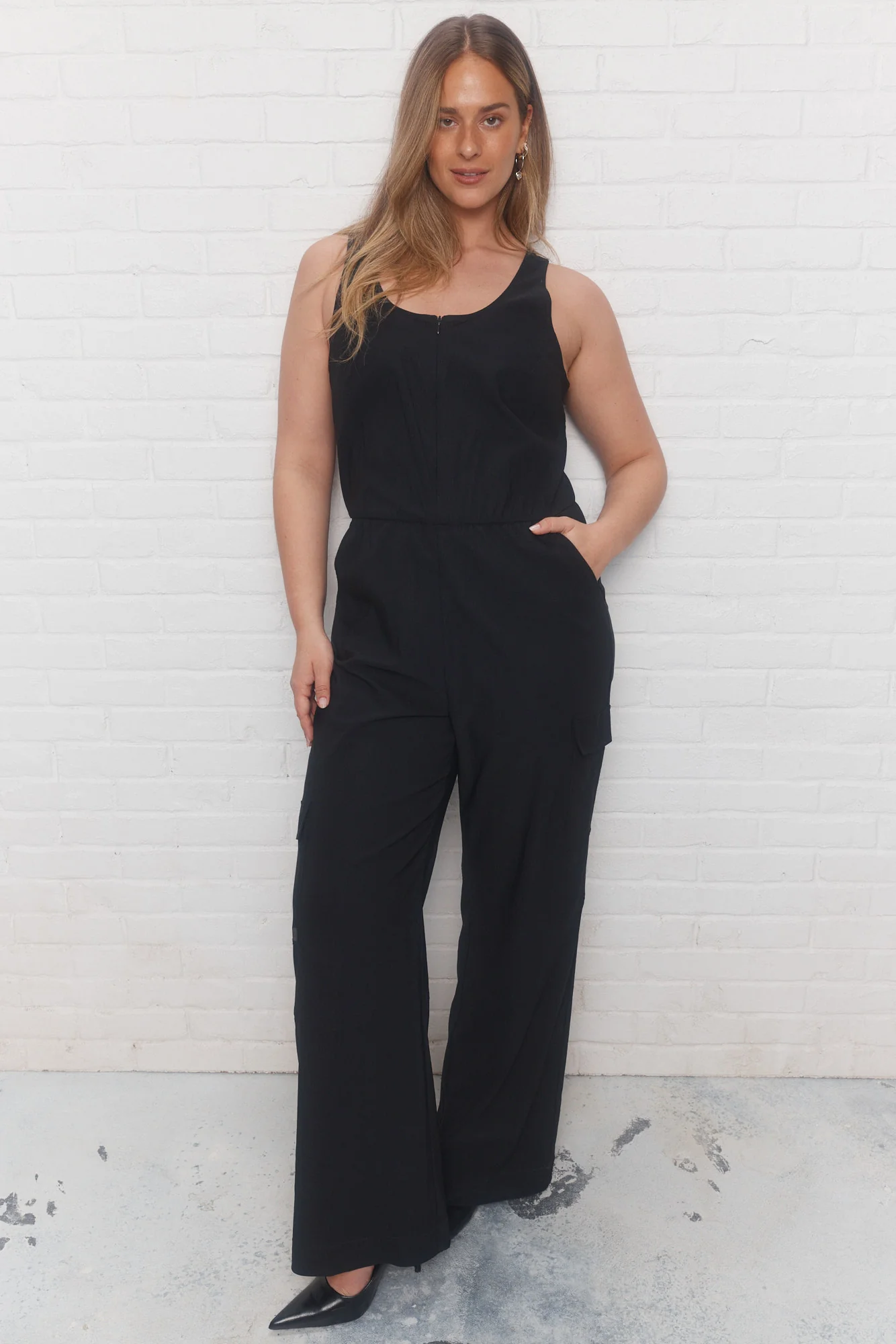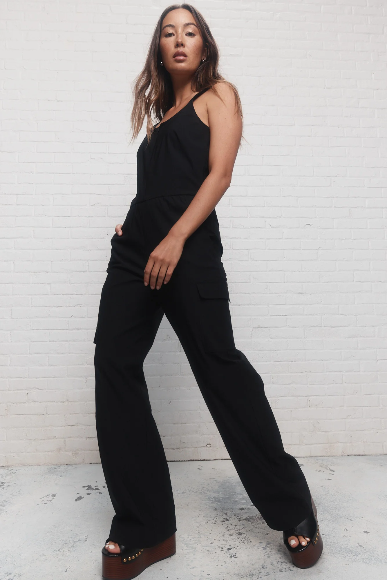 La combinaison noire utilitaire Audacy offre un côté pratique avec ses différentes poches et sa fermeture à glissière au-devant. Sa coupe est décontractée, tandis que ses cols en U et sa taille élastique apportent une touche de chic.