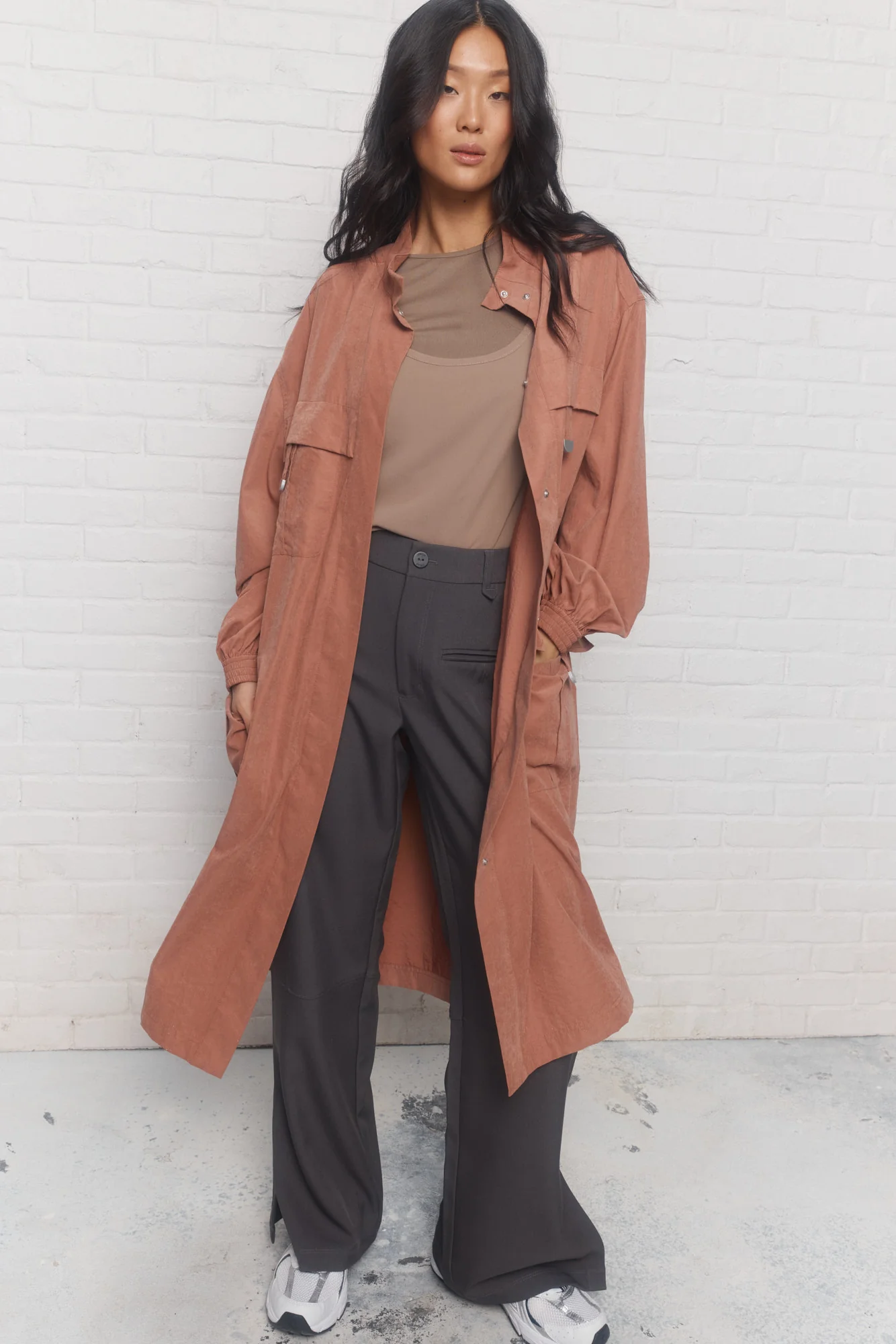 – Associez la camisole taupe 2-en-1 à une jupe pour un effet impeccable.