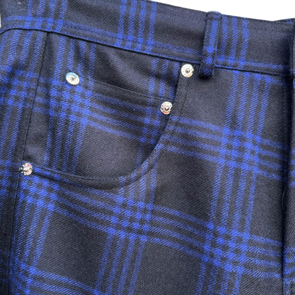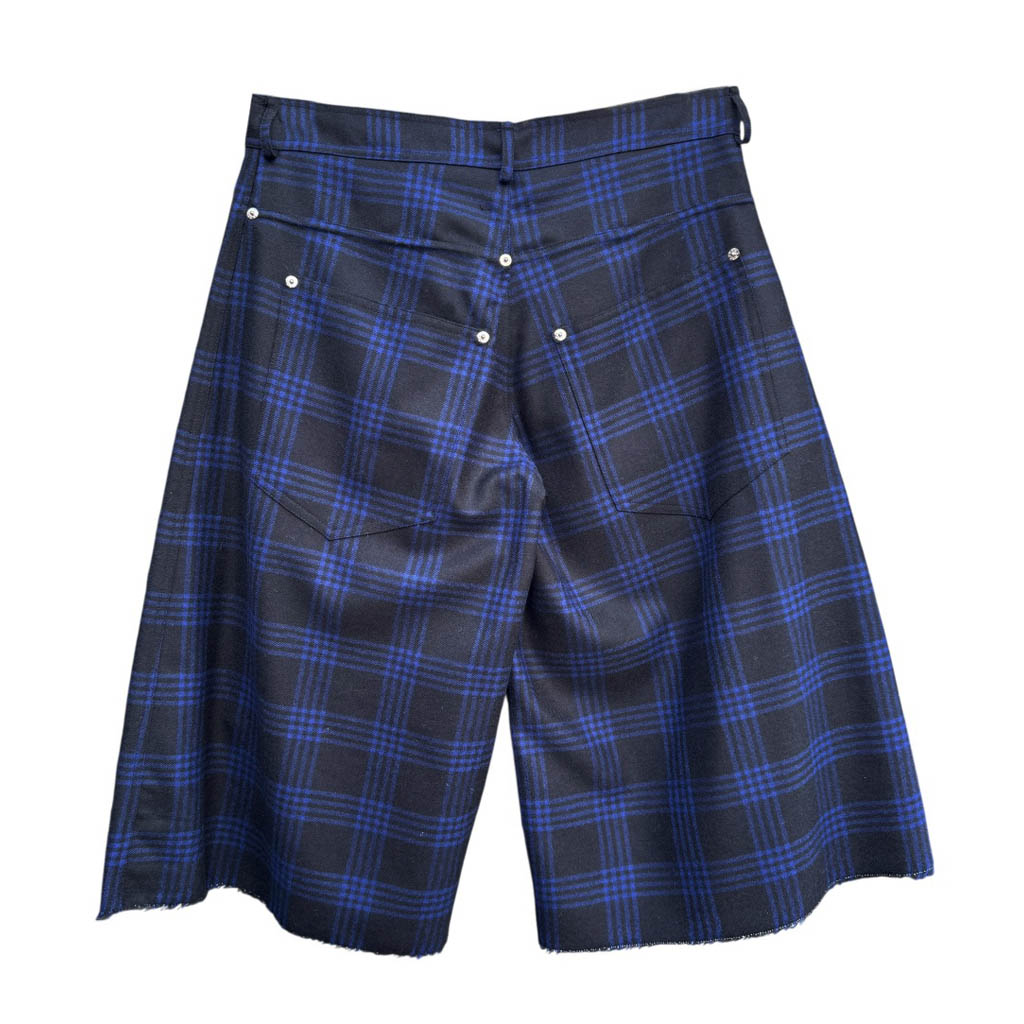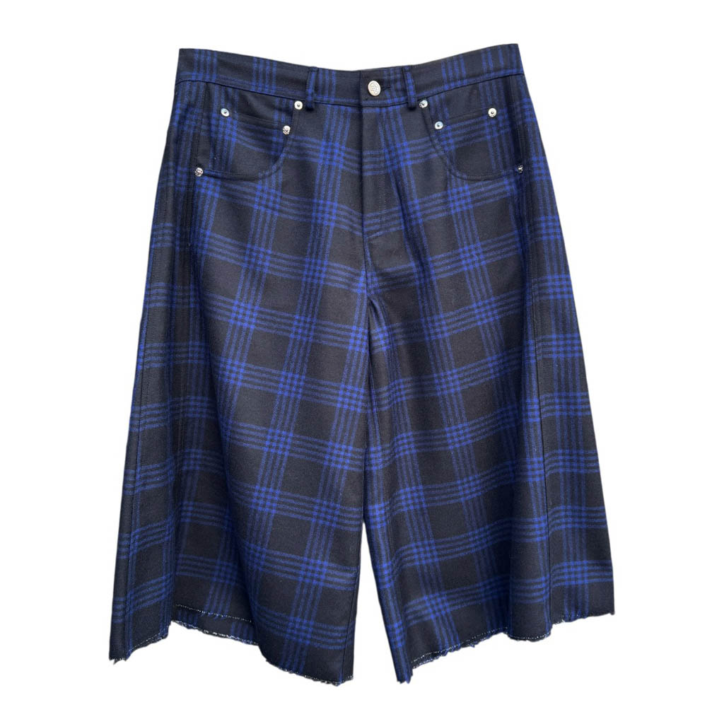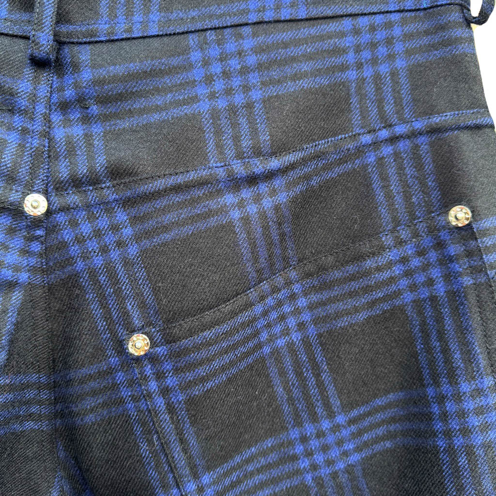 Baggy laine tartan noir bleu Elephant Paris Design Le modèle Baggy est une pièce unique réalisée en Tartan pure laine, léger et fin pour un confort et un tombé exceptionnel, deux grandes poches plaquées au dos et quatre devant. Ce design Elephant Paris est confectionné à partir de matériaux anciens, ici un Tartan noir et bleu, datant des années 1 9 8 0. Chaque détail reflète le savoir-faire artisanal : coutures anglaises et rivets en métal argenté — fabriqués en Italie et posés à la main à Paris. Composition : 1 0 0 % pure laine Fabrication : Pièce unique, Entièrement réalisé à Paris…