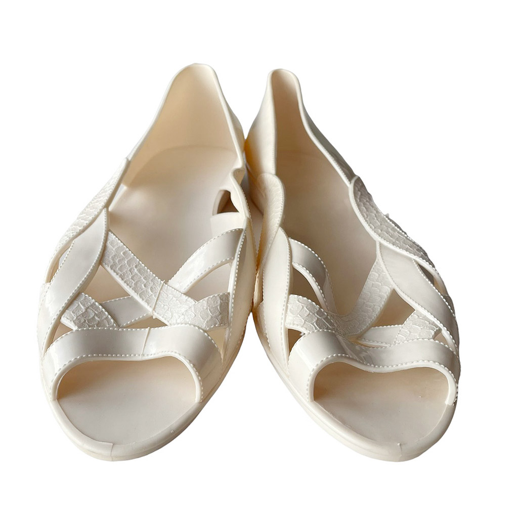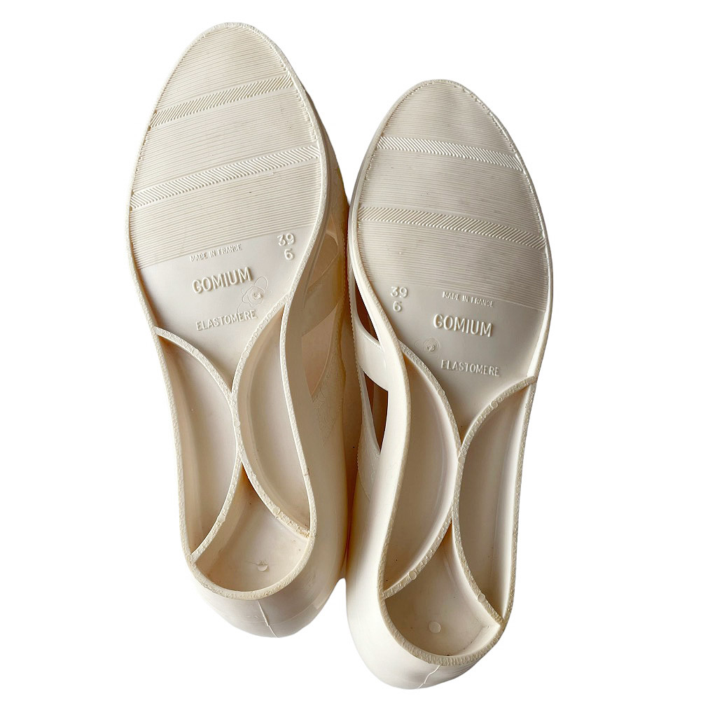 Ballerines sandales vinyl souple blanches vintage années 80, Pointure 39, Hauteur talon 2cm