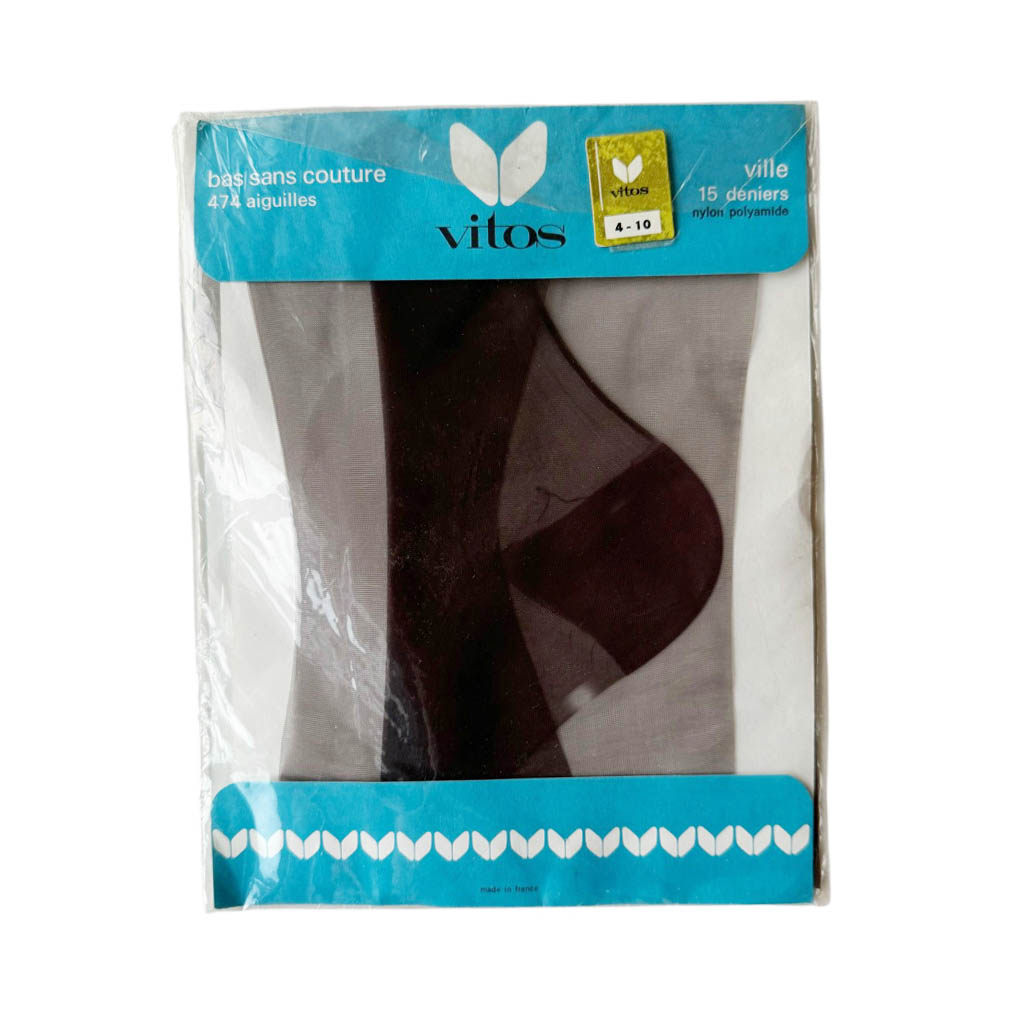 Bas sans couture Vitos 15 deniers Elephant Paris Vintage Bas 1010 Vitos vintage des années 70s, en nylon et polyamide, 15 deniers, 474 aiguilles, sans couture, ville, made in france Taille 4/10