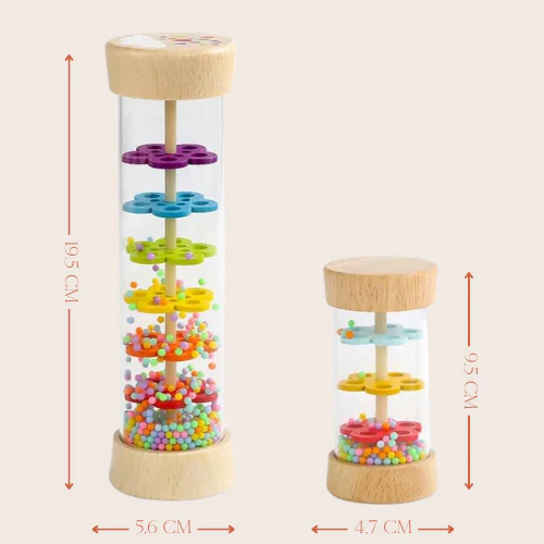 Disponibles en deux tailles élégantes, le bâton de pluie multicolore est un instrument captivant qui offre un doux murmure de pluie à chaque retournement, éveillant ainsi l’ouïe et améliorant la coordination. Fabriqués avec soin à partir de bois non toxique, nos bâtons de pluie sont aussi sûrs qu’écologiques, parfaits pour les petites mains curieuses.