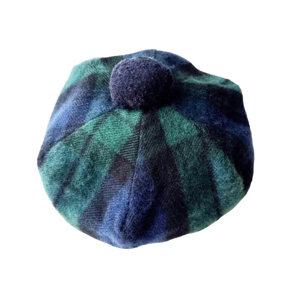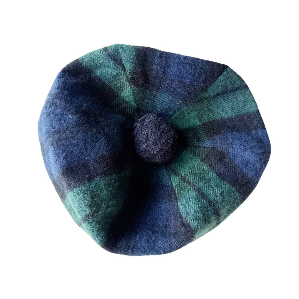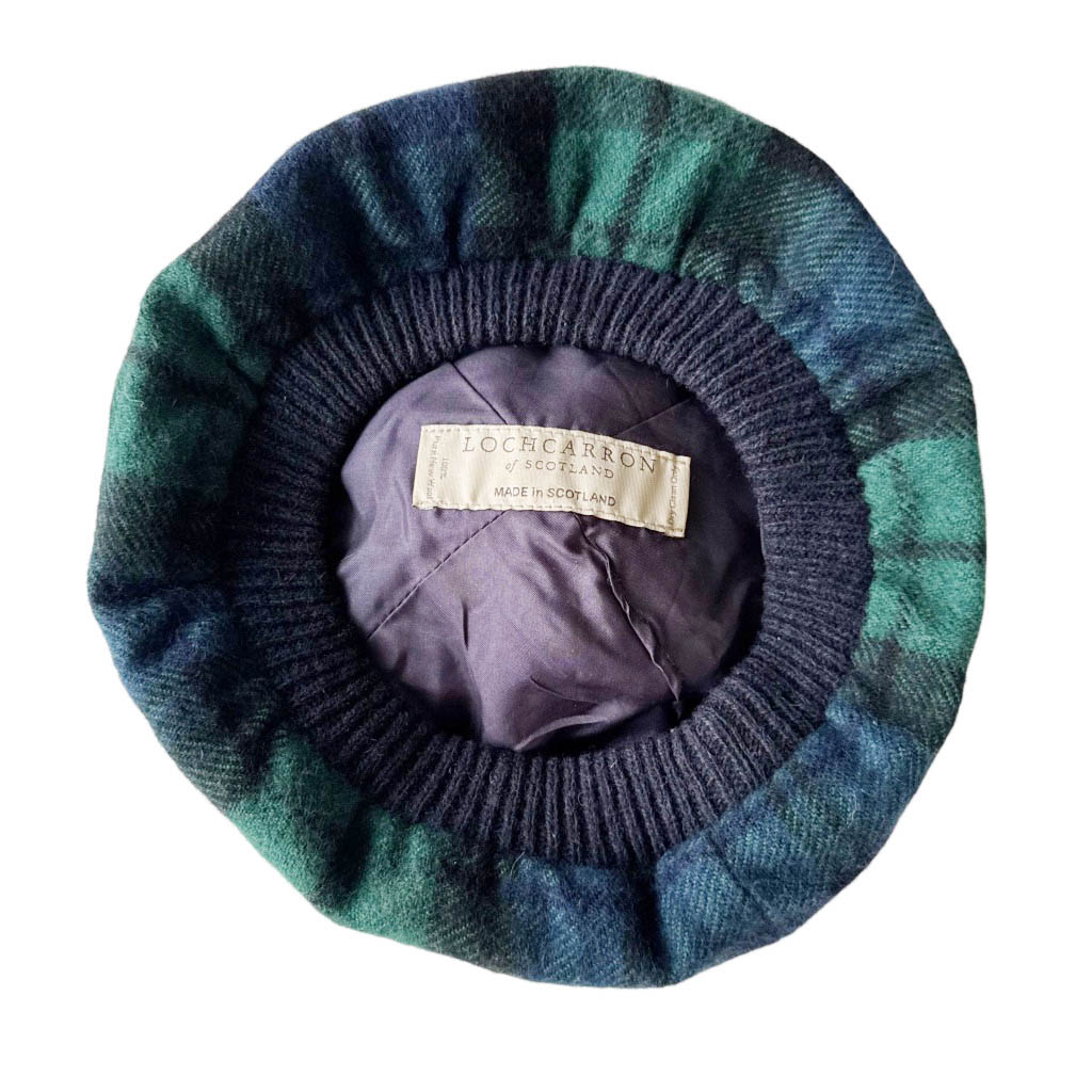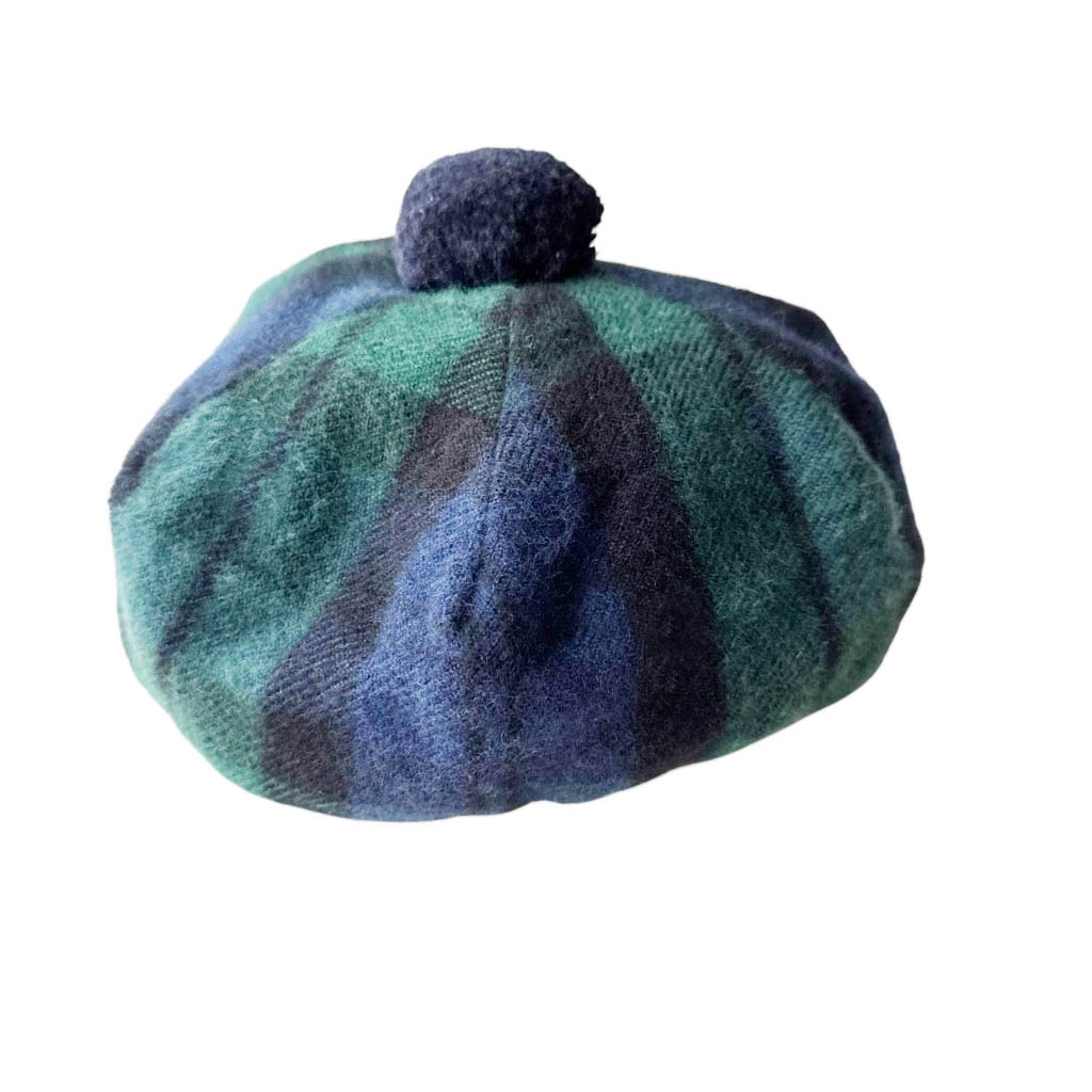 Béret écossais marine Lochcarron Elephant Paris Vintage Woven and made in Scotland, 100% wool Taille unique, tissé et fabriqué en Ecosse, ce béret en pure en laine vintage des années 1 9 70 , pompom en pure laine, tartan marine et vert foncé