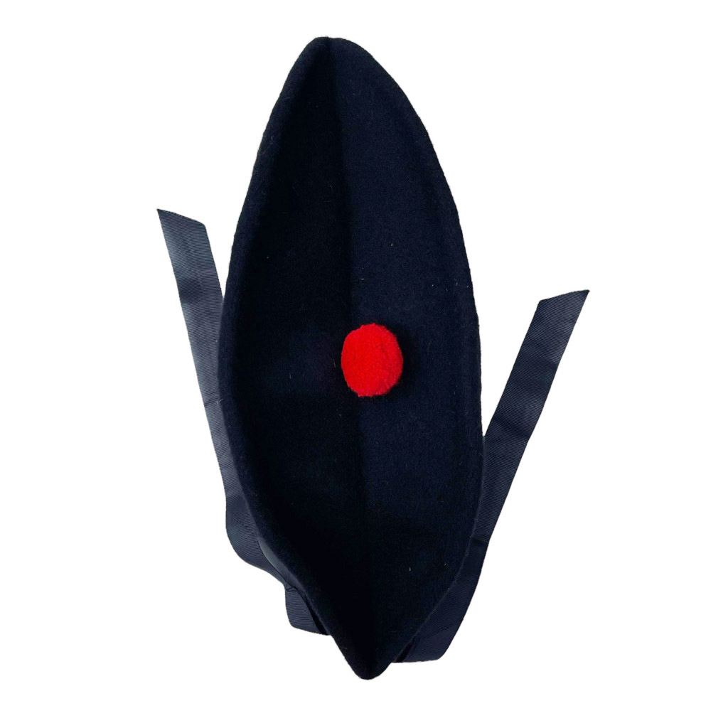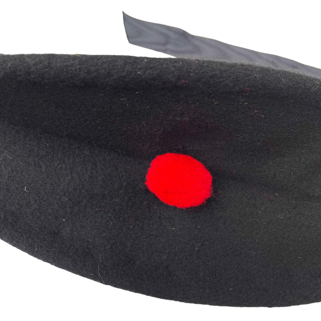 Béret en laine de l’armée, bordé d’un gros grain, pompom rouge, tour de tête 60