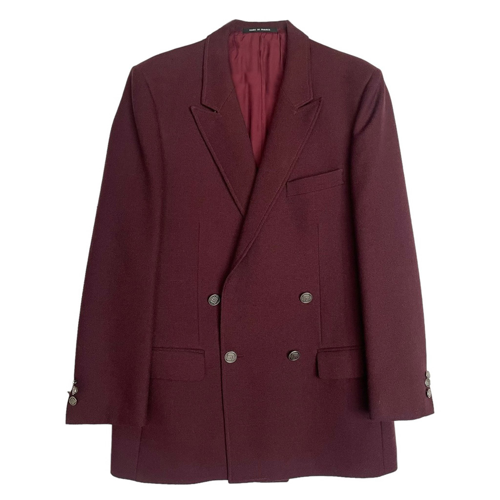 Blazer croisé Guy Laroche en coton bordeaux homme Elephant Paris Vintage boutons en métal monogrammés, doublé, poches intérieures et extérieures, Taille L Mesures à plat : Epaules 43cm, Poitrine 55cm, Longueur dos 79cm, Taille 40/42