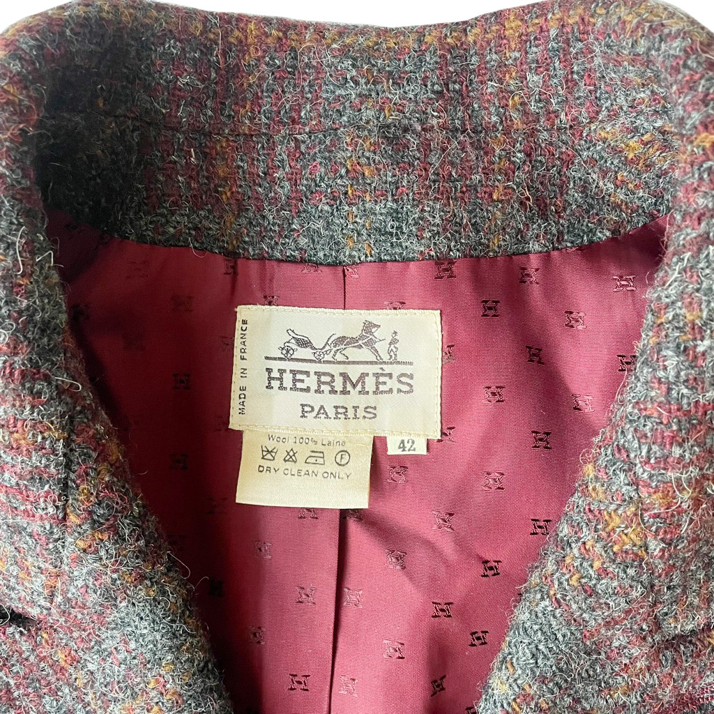Blazer Hermès croisé, vintage années 70, très bon état Elephant Paris Vintage Mesures à plat : Epaules 44cm, Poitrine 55cm, Longueur dos 70cm, Taille globale 36/38