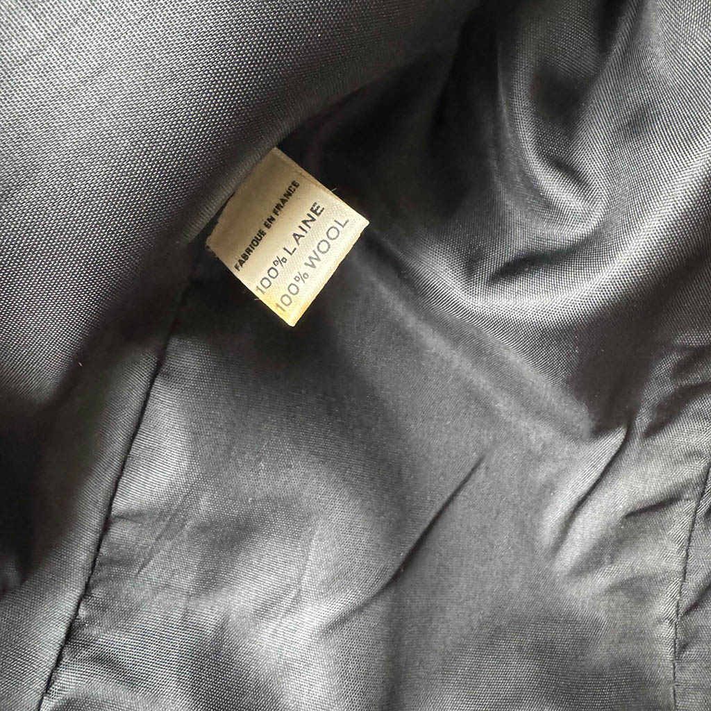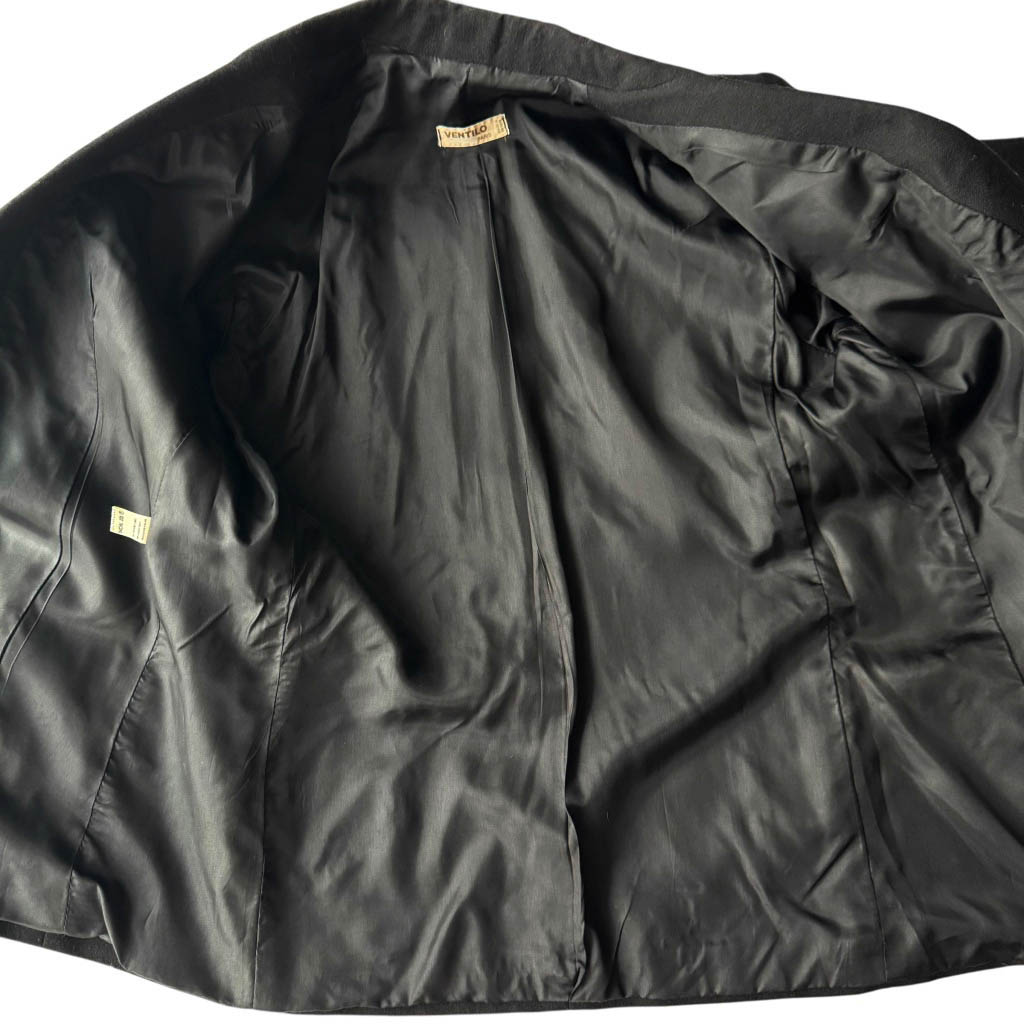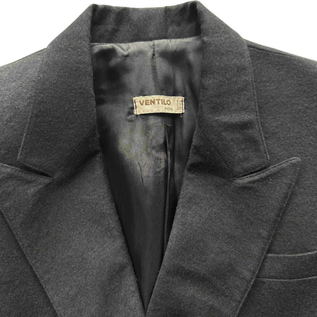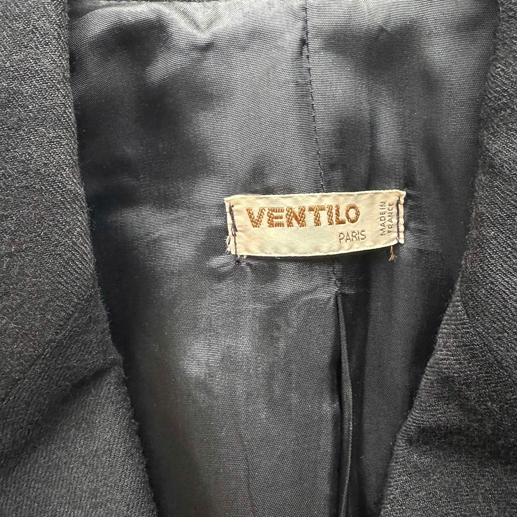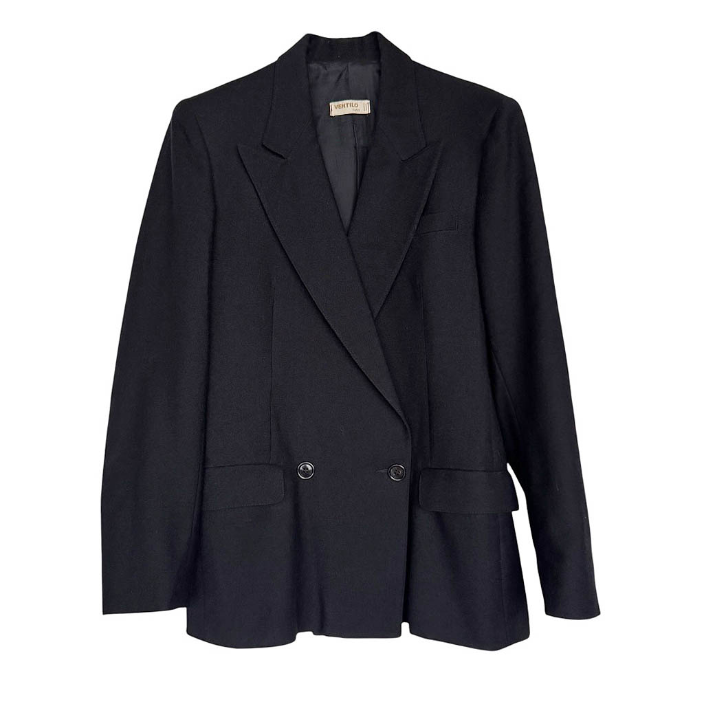 Blazer laine noir croisé Ventilo Elephant Paris Vintage Blazer en lainage noir croisé Ventilo vintage des années 80, 100 % laine, Mesures prises à plat : Epaules 40cm, Poitrine 52cm, Taille boutonnée 48cm, Longueur dos sans le col 68cm, Taille S/M, made in France