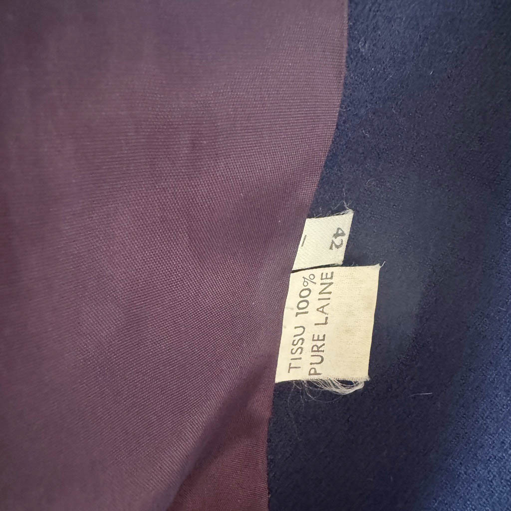 Blazer marine Georges et Albert Bender Elephant Paris Vintage Très belle coupe classique des années 80, 100 % pure laine, doublure 100 % acétate, Made in France Créé et diffusé par Georges et Albert Bender dans le Marais, Paris, Taille d’époque 42, Mesures prises à plat : Epaules 44 cm, Poitrine 52 cm, Longueur dos avec le col 72 cm, Longueur manche 60 cm, Taille M / L