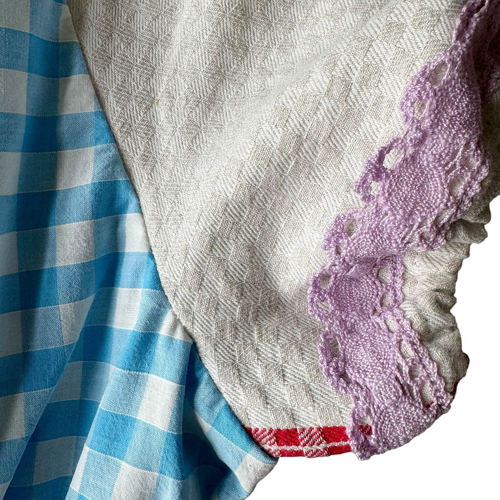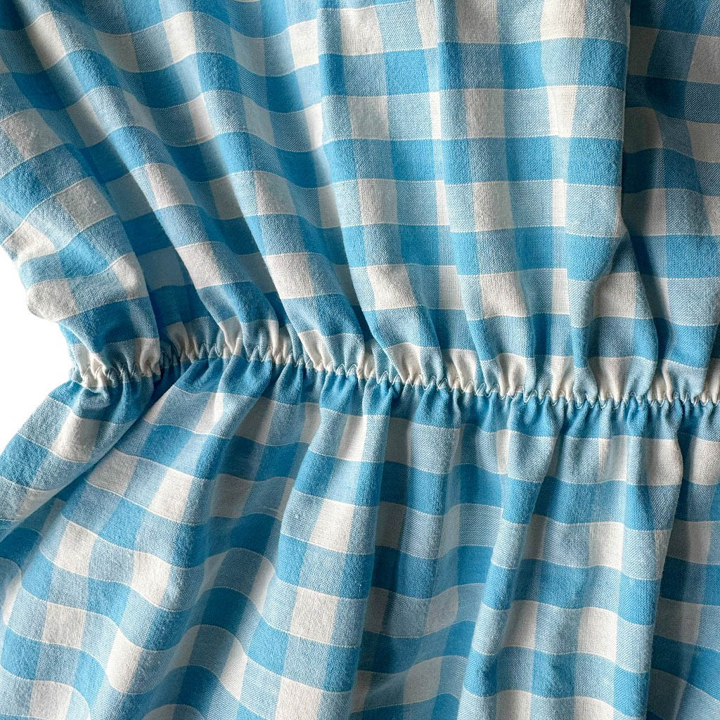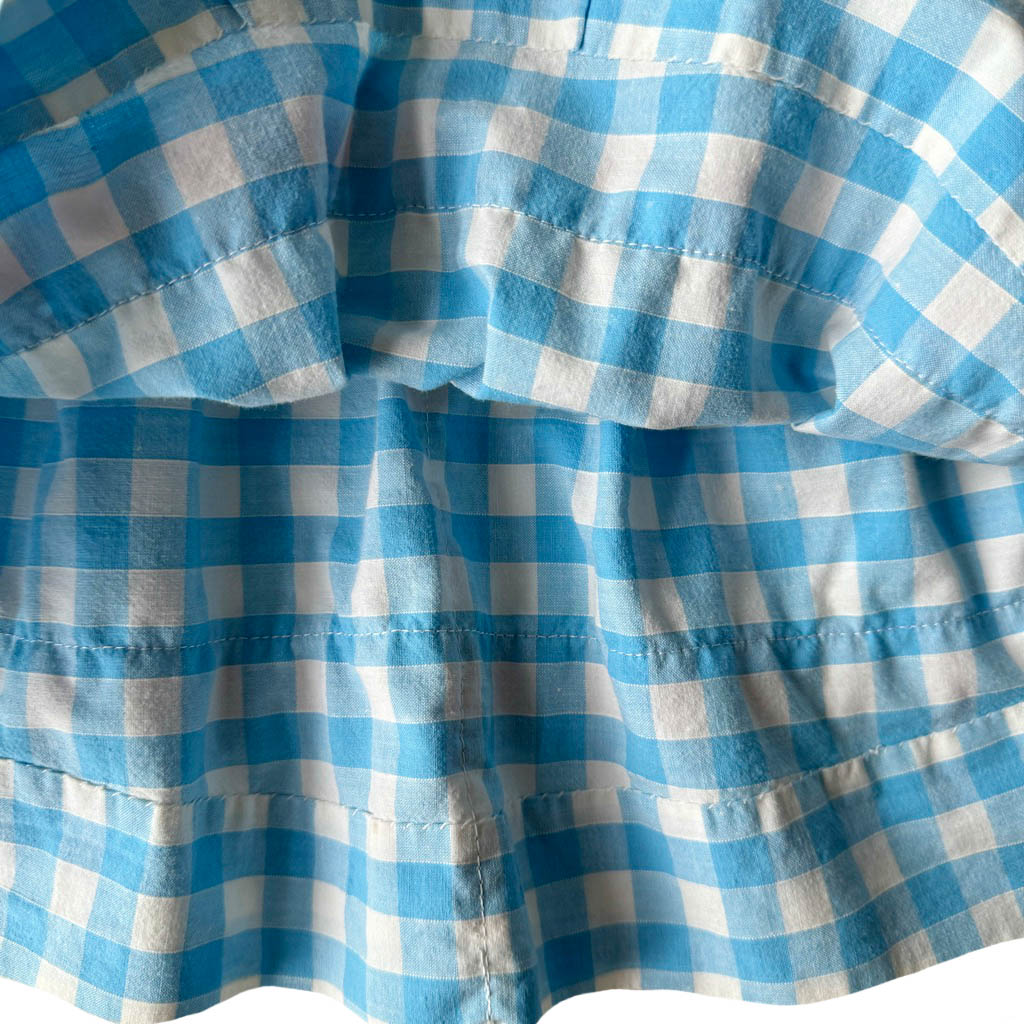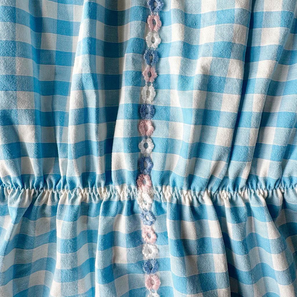 Blouse coton vichy turquoise lilas Elephant Paris Design Upcycling réalisé avec des matériaux anciens coton vichy, broderie coton années 70, Pièce unique Made in France, Longueur dos 58cm, Taille 36, S
