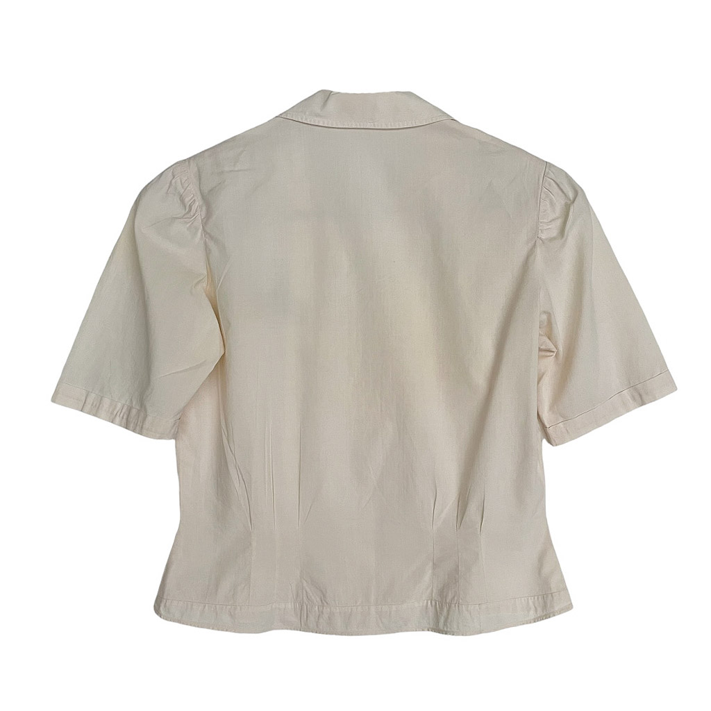 Blouse en coton brodé vintage des années 40, boutons en nacre, cintrée à la taille, petites épaulettes surpiquées, finitions main, Taille 34/36 Elephant Paris Vintage