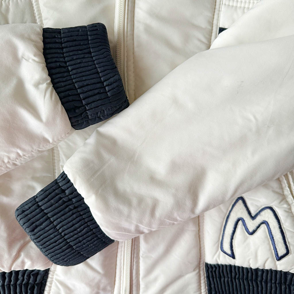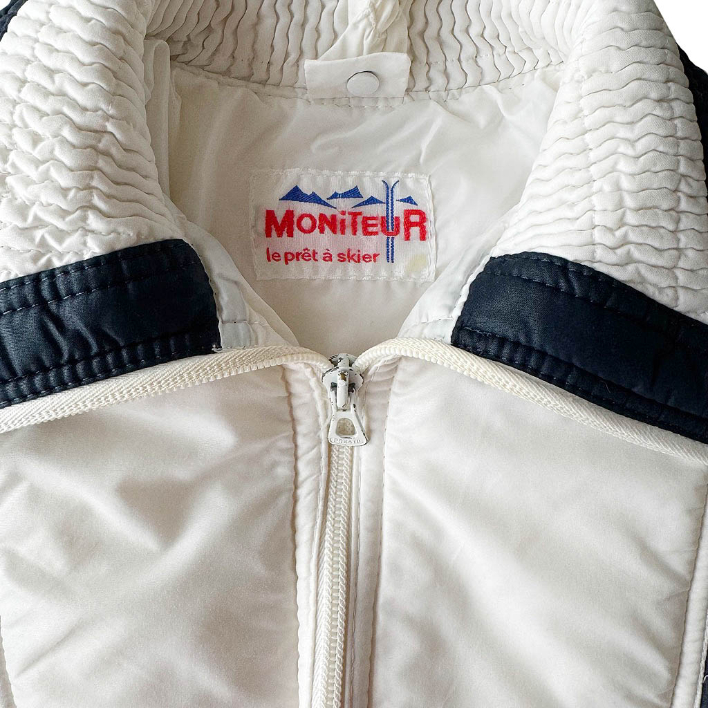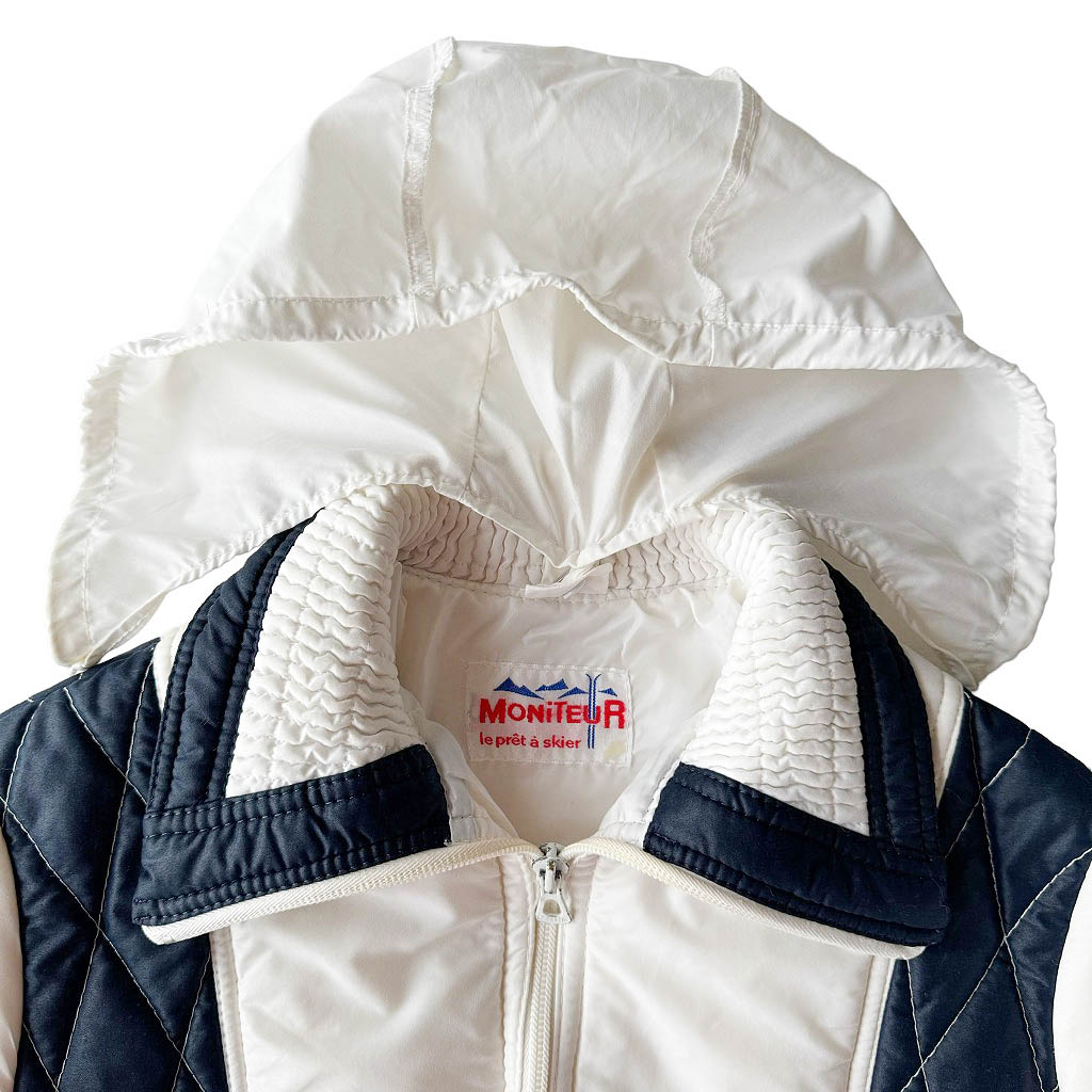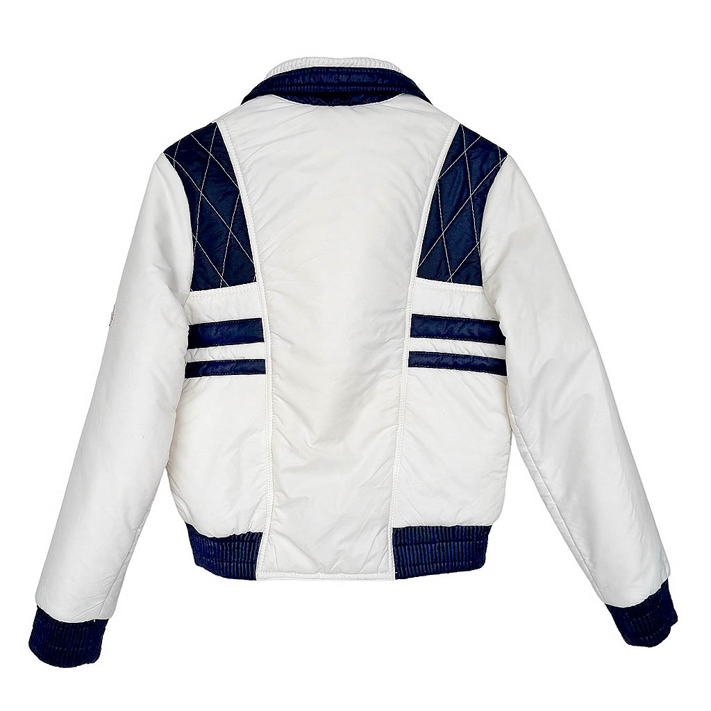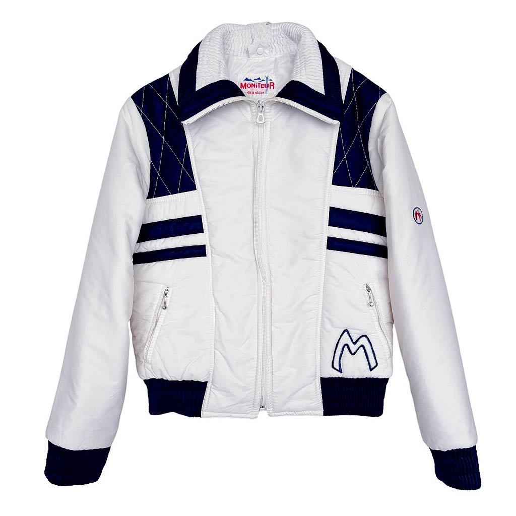 Blouson Moniteur bleu blanc Elephant Paris Vintage Années 70, synthétique polyamide, polyester, Mesures à plat : Epaules 41cm, Poitrine 51cm, Longueur dos 58cm, Taille 36/38