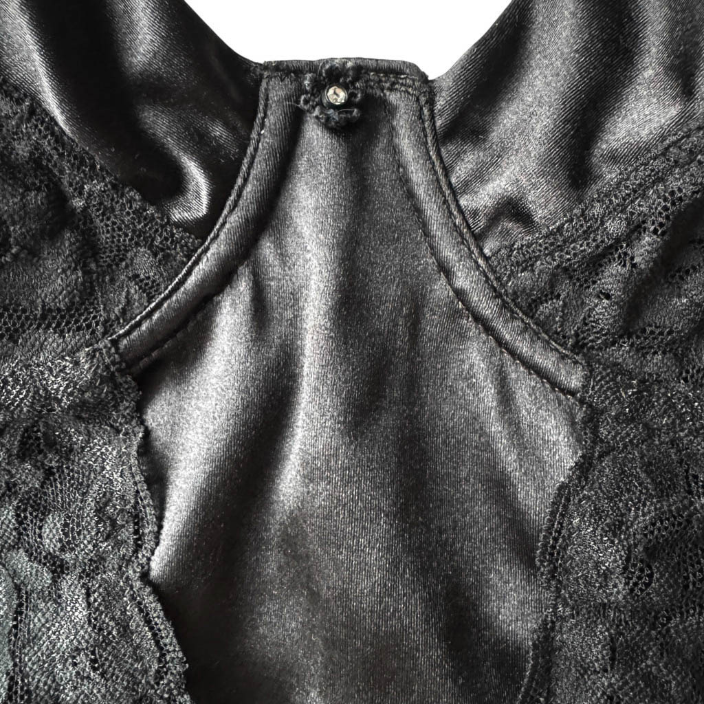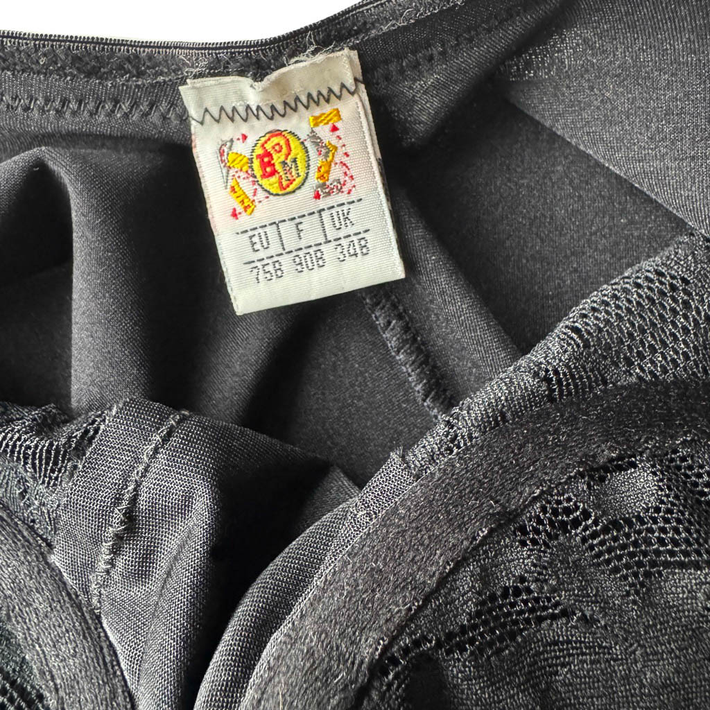 Body noir baleines et dentelle Elephant Paris vintage Datant des années 1 9 8 0, 8 0 % polyamide et 2 0 % élasthane, dentelle, neuf d’époque, très bon état Mesures prises à plat : Epaules : 3 7 / 6 7 c m, Poitrine : 4 0 / 6 3 c m, Taille : 3 0 / 4 4 c m, Longueur dos : 6 5 c m, Taille globale : S / M, Bonnet : France 9 0 B / Europe : 7 5 B / United-Kingdom : 3 4 B