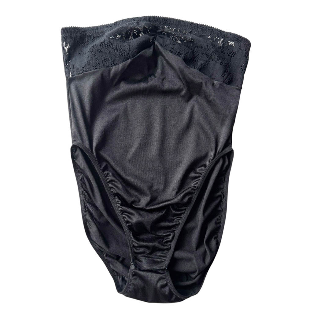 Body noir bustier uni Elephant Paris vintage Datant des années 1 9 8 0, élasthane et dentelle élasthane, Mesures prises à plat : Epaules : 3 7 / 6 7 c m, Poitrine : 4 0 / 6 3 c m, Taille : 3 0 / 4 4 c m, Longueur dos : 6 5 c m, Taille globale : S / M, neuf d’époque