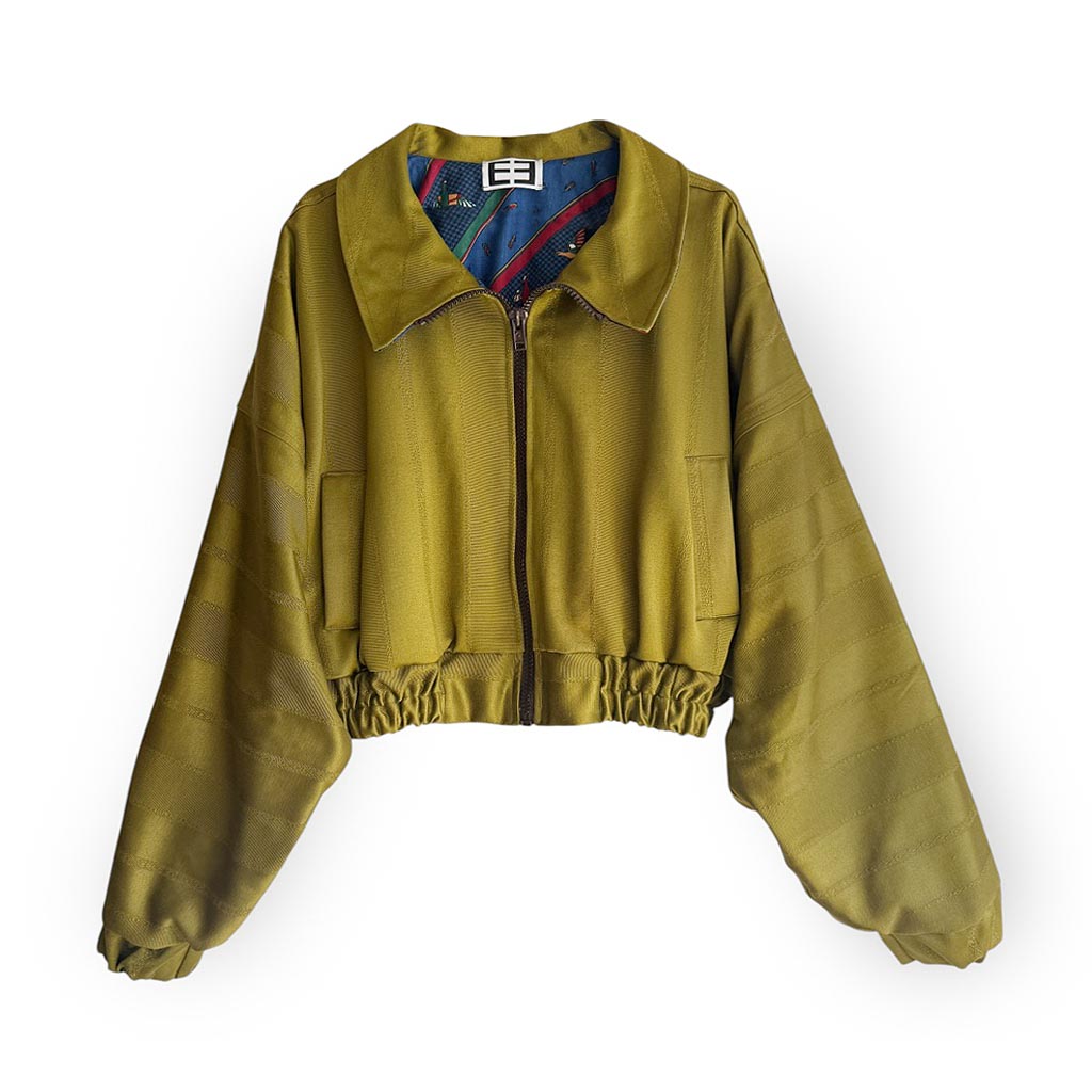 Bombers kaki Olive Kaki Elephant Paris Design Design réalisé avec des matériaux anciens, belle étoffe d’ameublement aux reflets changeants et lumineux, années 1 9 7 0, satin épais tissé, doublé d’un drap de coton imprimé datant des années 1 9 8 0, grosse fermeture à glissière de la marque Prestil neuve d’époque des années 1 9 7 0, Cette pièce unique est entièrement fabriquée à Paris Mesures prises à plat : Epaules et poitrine oversizes, Longueur dos : 5 2 c m, Taille globale : 6 6 L / X L / Unique
