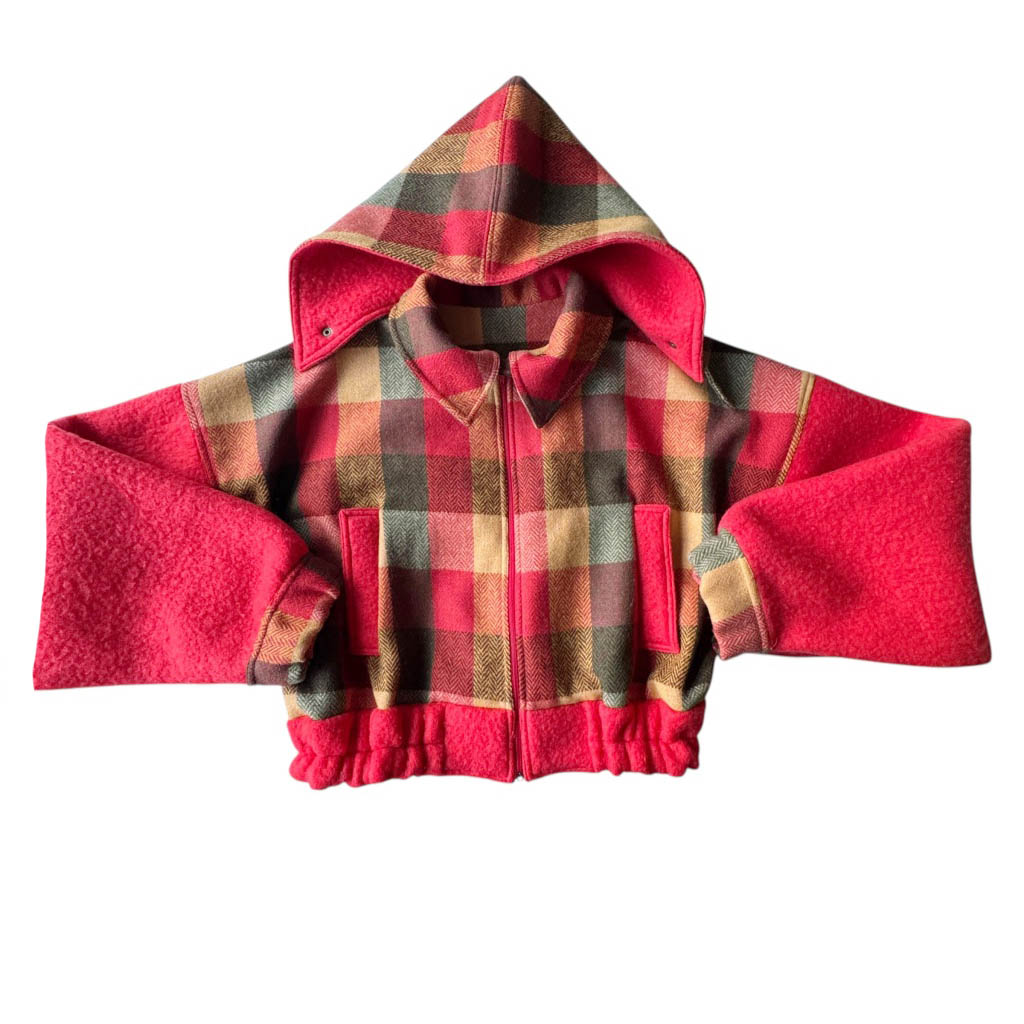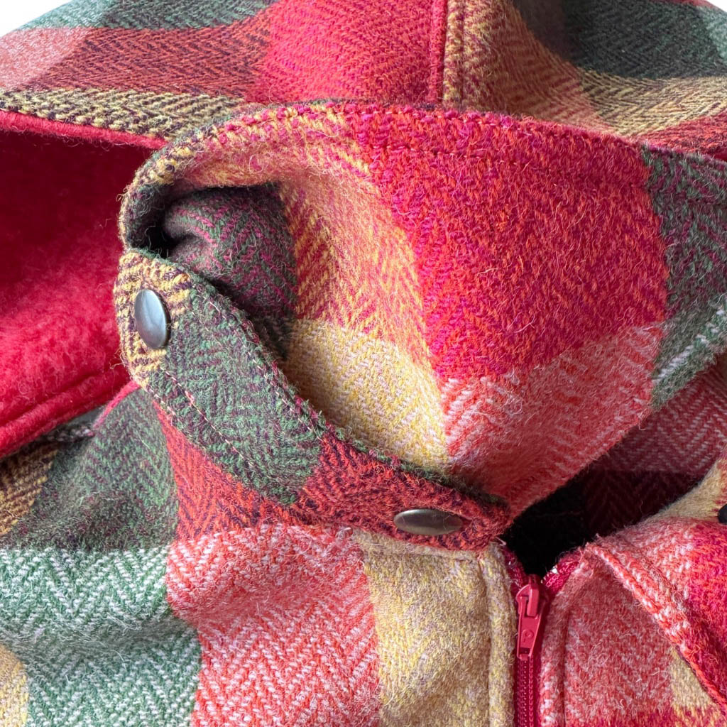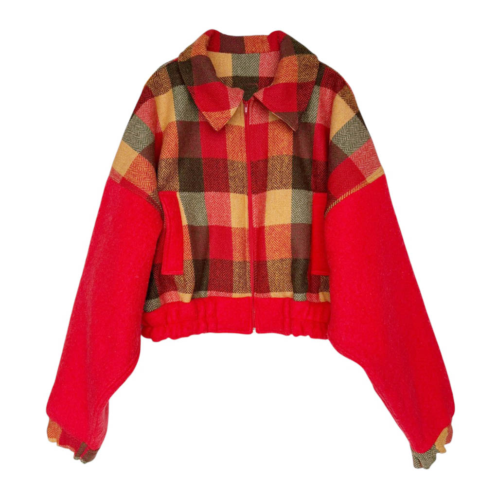 Bombers laine tartan orange N7 Elephant Paris Design Ce design est réalisé avec des matériaux anciens, drap de laine épais et tweed made in Scotland, neufs d’époque des années 1 9 8 0, dans des dégradés de oranges, bruns et rouges, et est issue de carrés en soie, la grosse fermeture à glissière devant de la marque Prestil est aussi neuve d’époque des années 1 9 7 0, deux poches devant, élastique de taille et de poignets Pièce unique fabriquée à Paris, le bombers incarne l’esprit d’Elephant Paris : des créations singulières réalisées à partir de matériaux anciens et nobles, soigneusement…