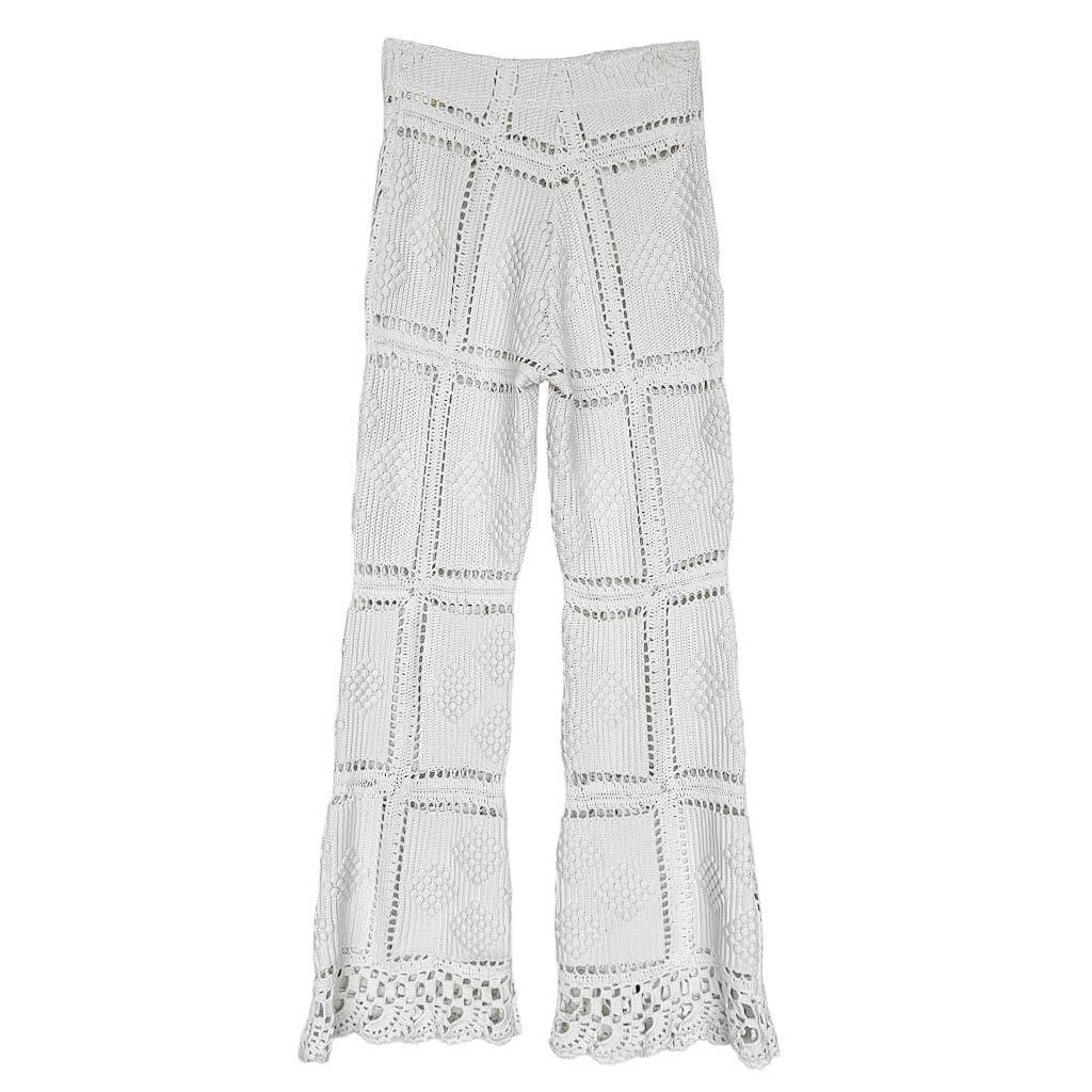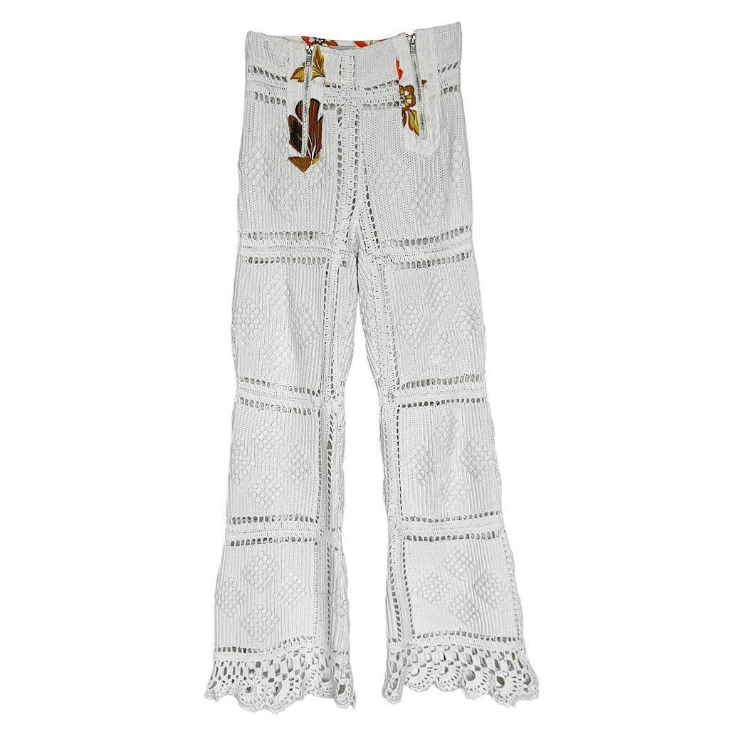 Boots cut crochet blanc orange Elephant Paris Design Coton crocheté en relief à la main, empiècements en coton, Design réalisé avec des matériaux anciens, Pièce unique Made in France, Taille haute 34cm, Hanches 40cm, Longueur entrejambes depuis la taille 30cm, Longueur 109cm, Taille 36 Le matériaux (crochet) utilisé pour la fabrication de ce pantalon est fragile, il mérite donc la plus grande délicatesse