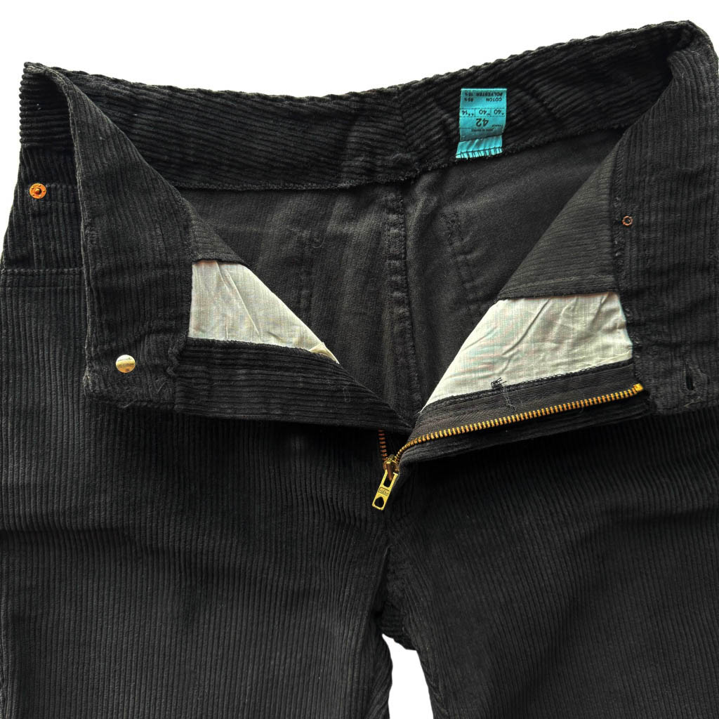 Bootcut velours côtelé noir Ananas Elephant Paris vintage Neuf d’époque années 70, Taille 38cm, Longueur entrejambe 29cm, Longueur 114cm