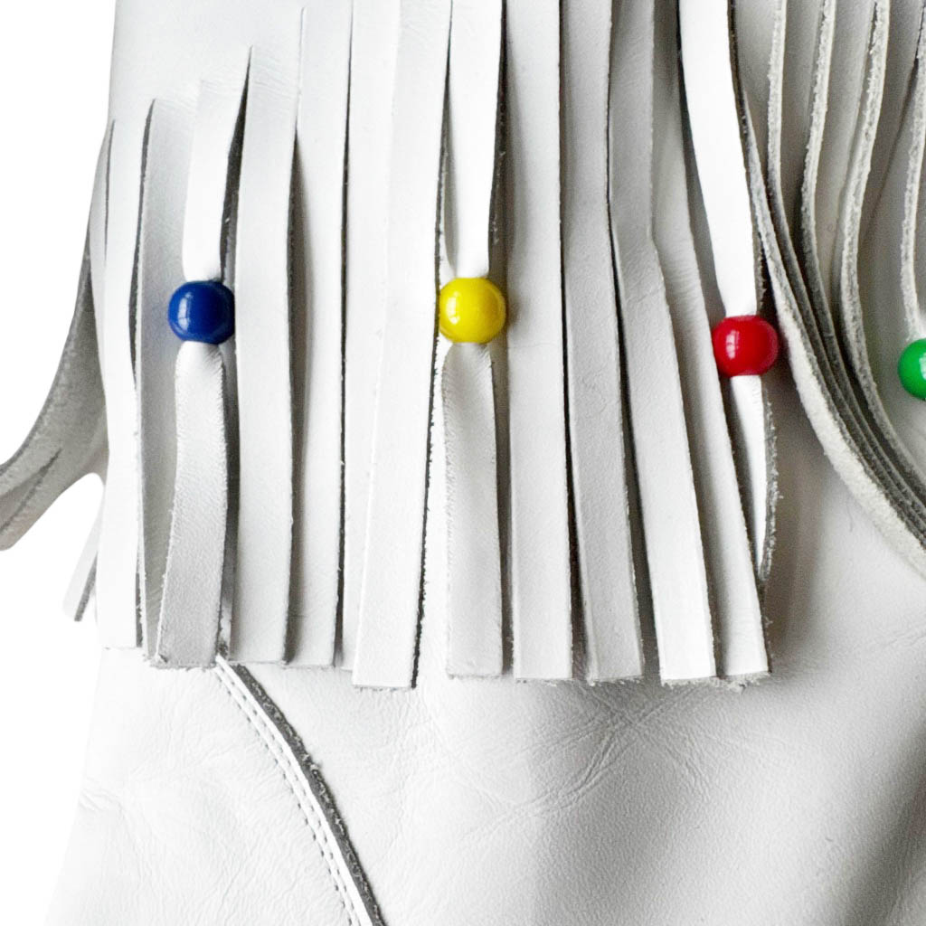 Bottes blanches cuir franges