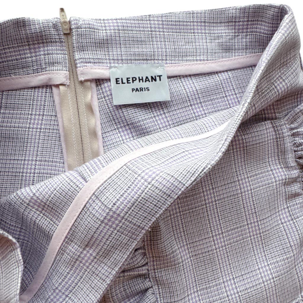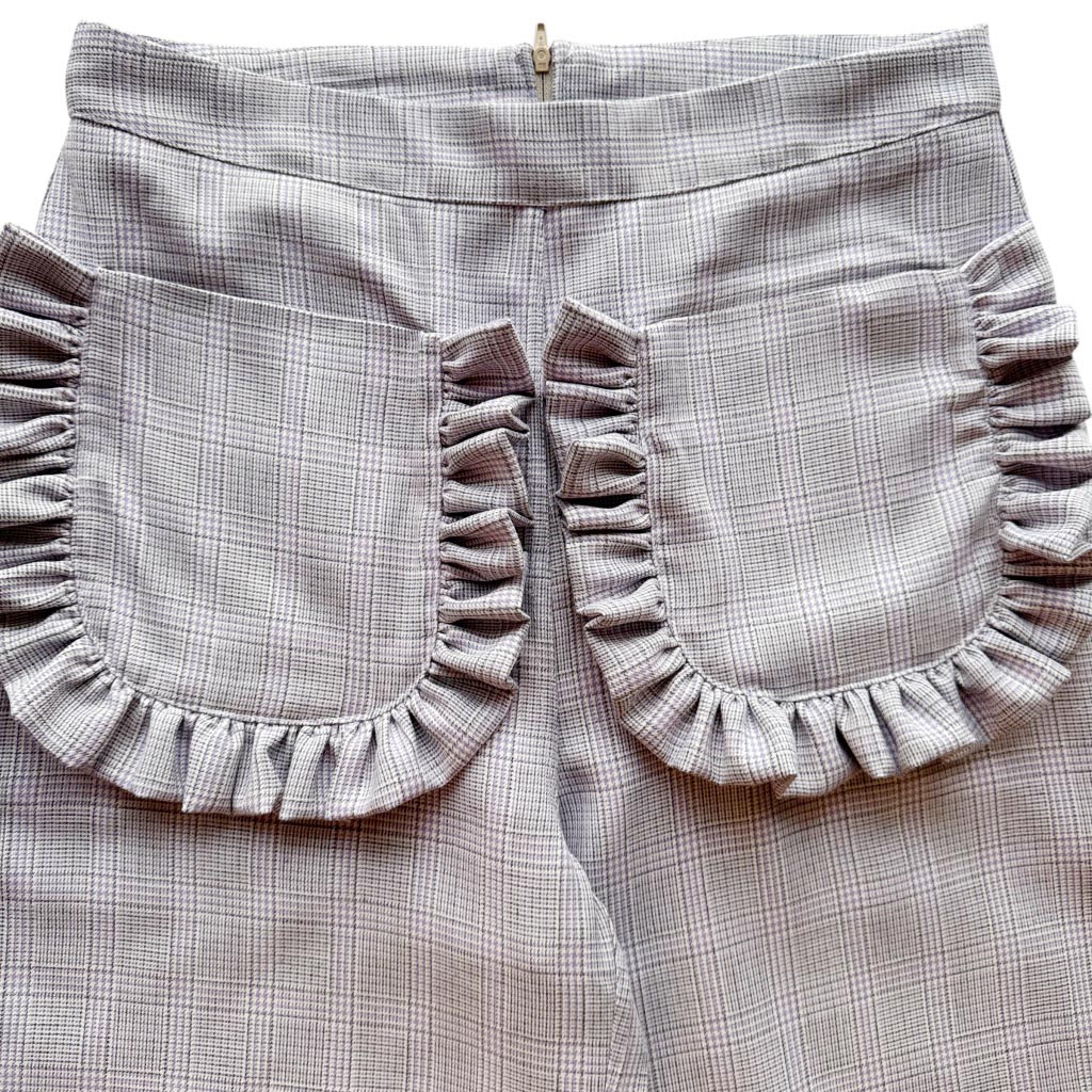 Butterfly Prince de Galles Lilas Elephant Paris Design Ce design est réalisé avec des matériaux anciens, tissus de coton mélangé laine au motif Prince de Galles pastel couleur lilas et gris clair, datant des années 1 9 8 0, finitions gansées au biais de coton rose clair et coutures anglaises, fermeture à glissière dans le dos neuve d’époque des années 1 9 7 0, les deux poches plaquées à volant sont doublées Cette pièce est unique et entièrement fabriquée à Paris Mesures prises à plat : Taille haute : 3 7 cm, Hanches 4 5 cm, Longueur entrejambes depuis la…