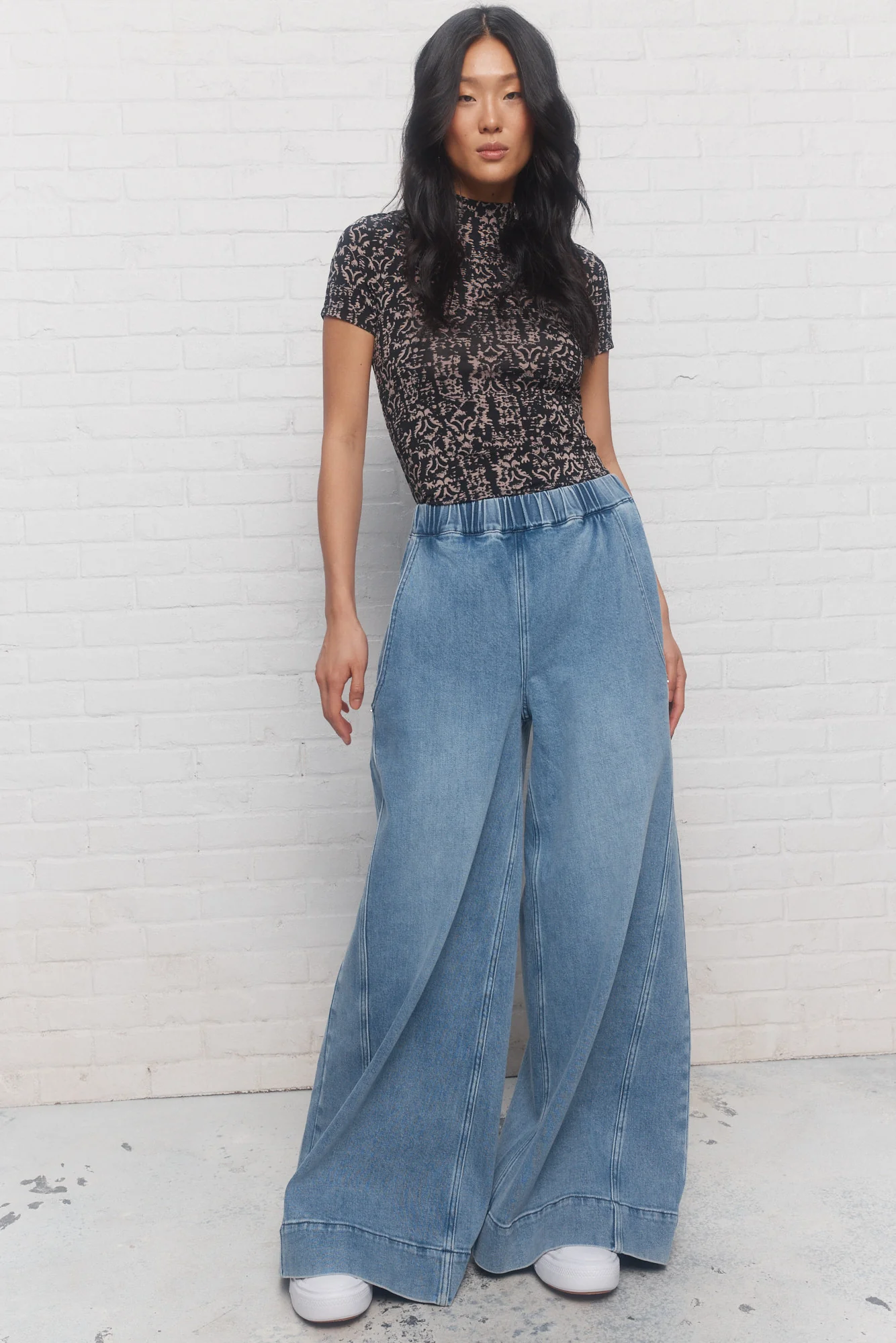 - Le modèle mesure 5’8 » (buste 31, taille 25 1/2, hanches 34 1/2) et porte la taille S