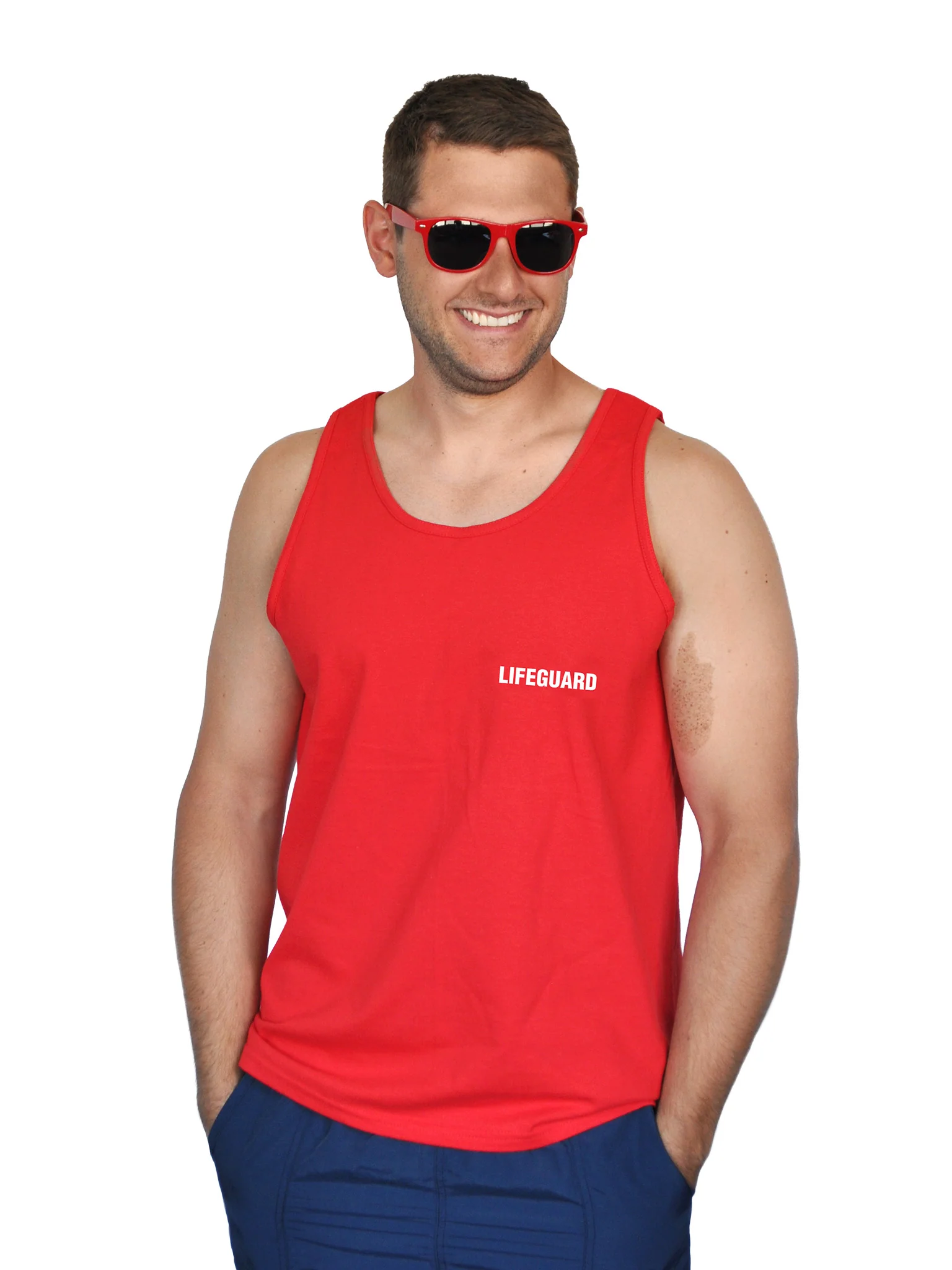 Avec leur logo « Lifeguard », ces camisoles Aquam font fureur auprès des maîtres-nageurs. De couleur rouge, le t-shirt sans manches arbore un logo blanc, imprimé en gros au dos et en plus petit à l’avant. Grâce à ces camisoles faites à 100 % de coton prérétréci, les baigneurs repèrent facilement les sauveteurs autour de la piscine.