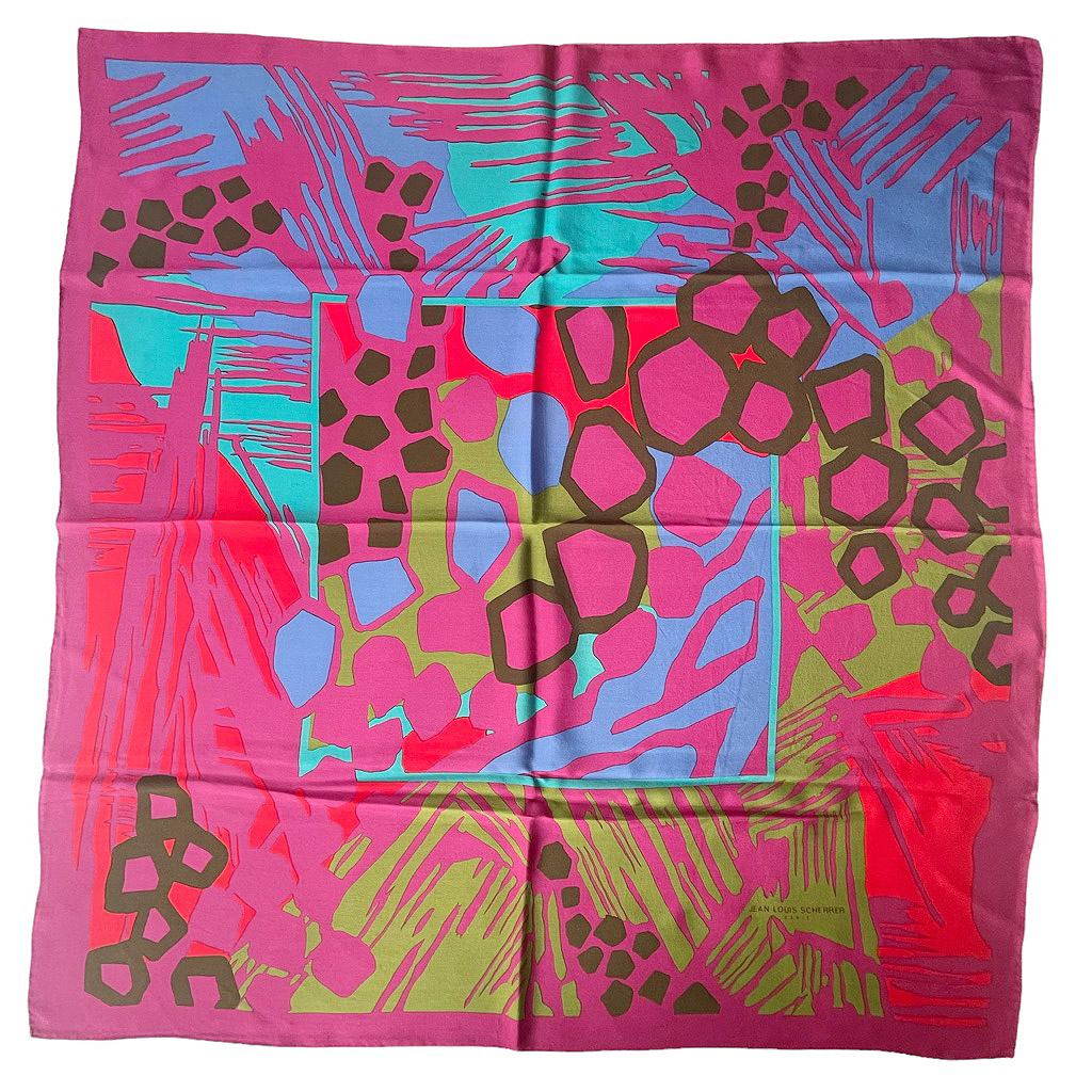 Carré soie JL Scherrer 83X89cm Rouloté main.