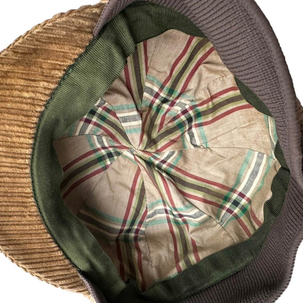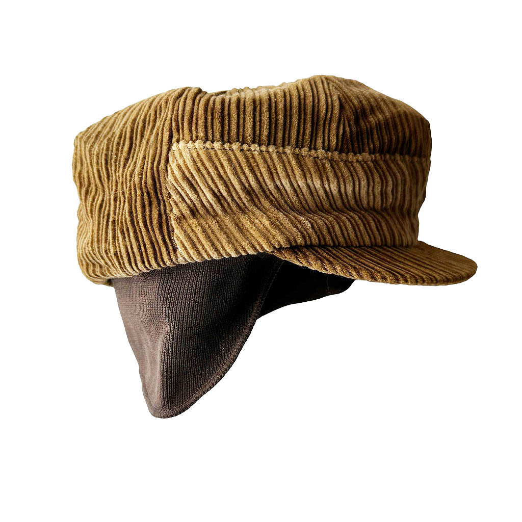 Casquette kid velours cotele Elephant Paris Vintage Velours côtelé, doublée tartan coton, boucle en métal, le rabat en maille lycra peut se replier à l’intérieur, ou être descendu sur les oreilles, Tour de tête 58cm