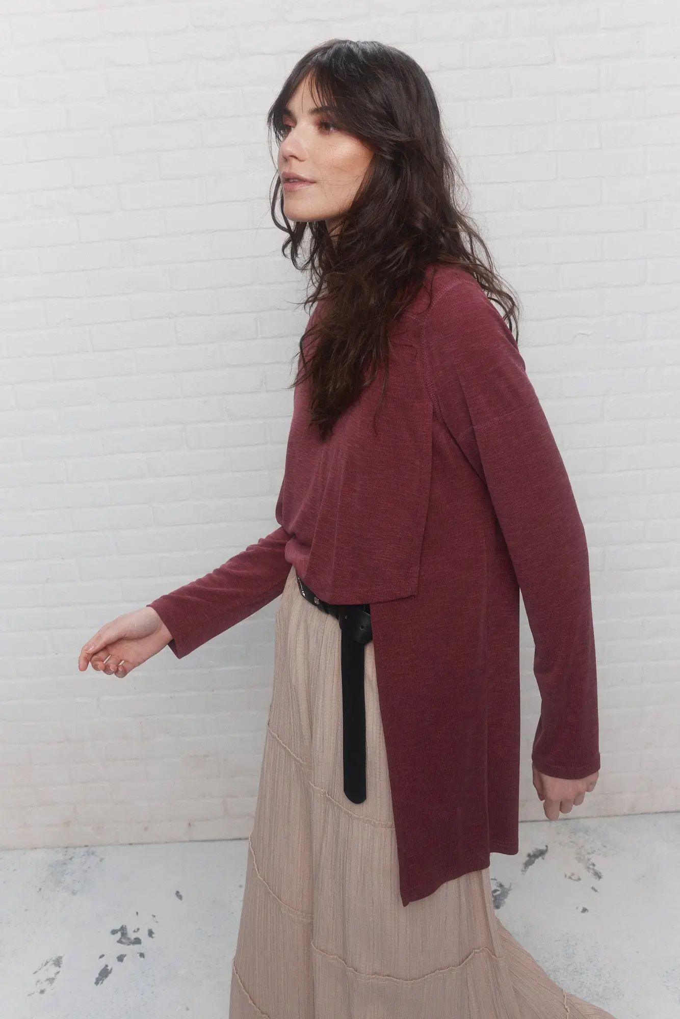 Terra est un chandail framboise texturé au design asymétrique qui séduit par son originalité. Confectionné dans un tissu extensible, il vous assure un confort optimal tout en épousant élégamment votre silhouette. Son encolure ronde et ses manches longues semi-ajustées viennent parfaire son allure, faisant de Terra une pièce à la fois moderne et confortable.