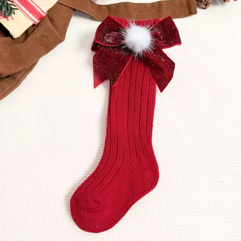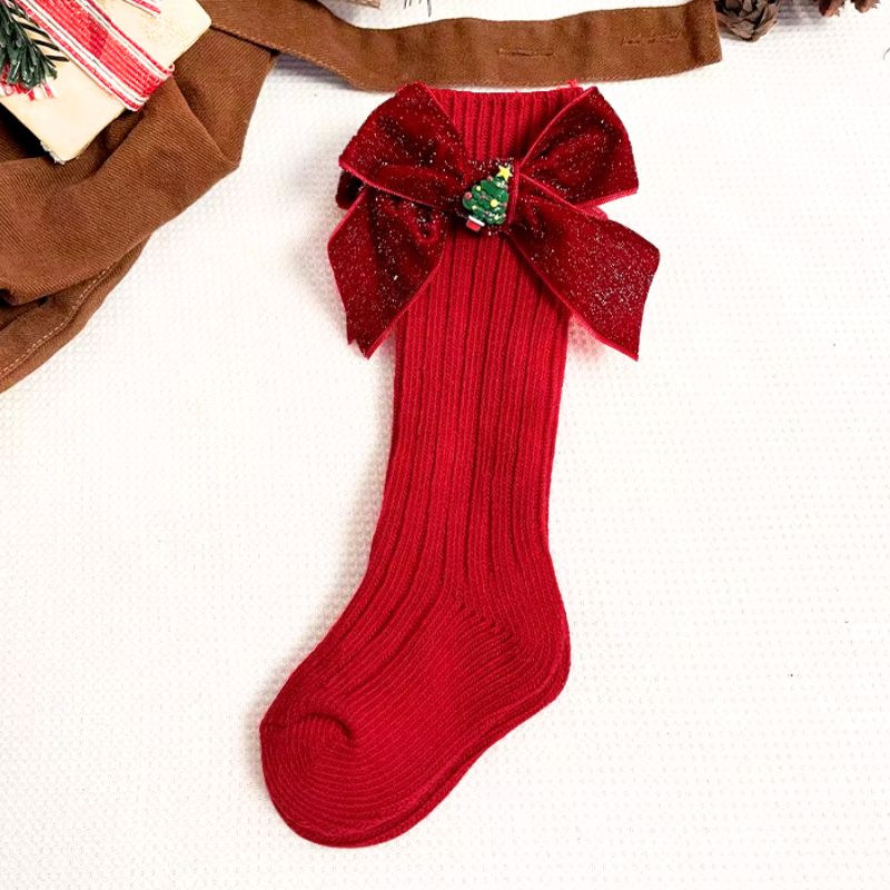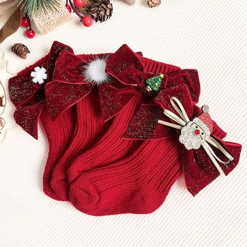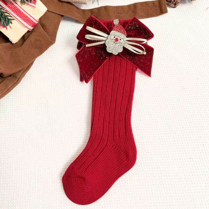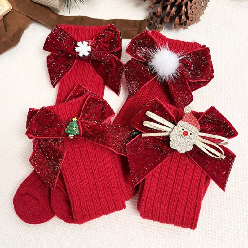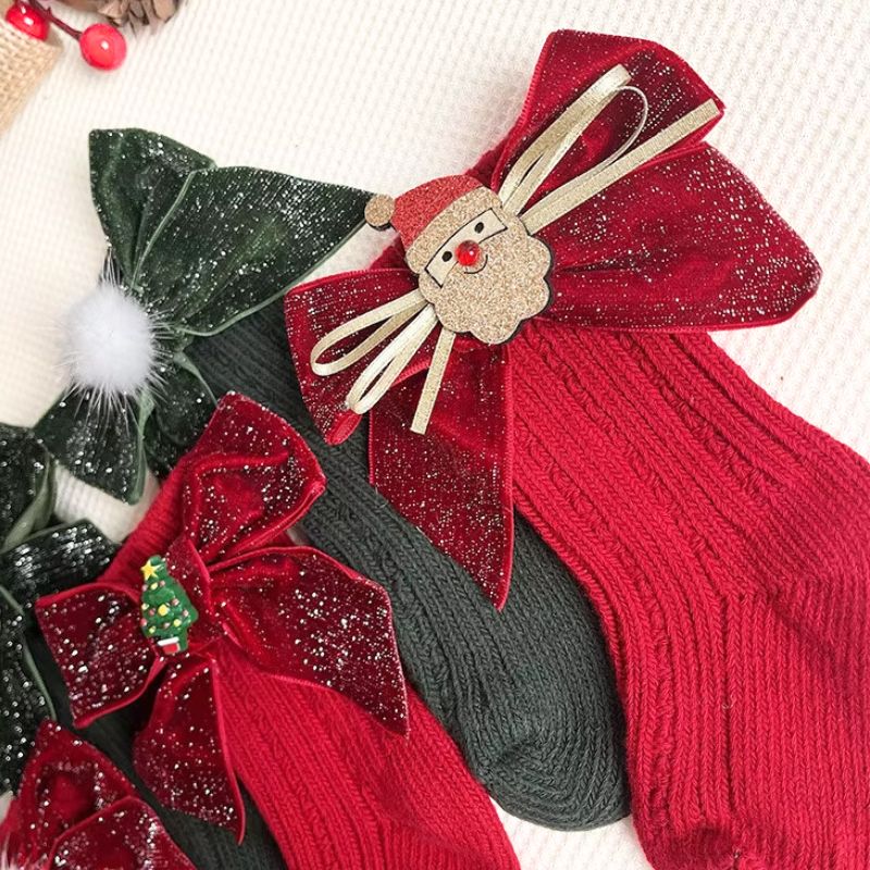 Ajoutez une touche festive aux tenues d’hiver de vos enfants avec ces chaussettes de Noël hautes avec un nœud pailleté !