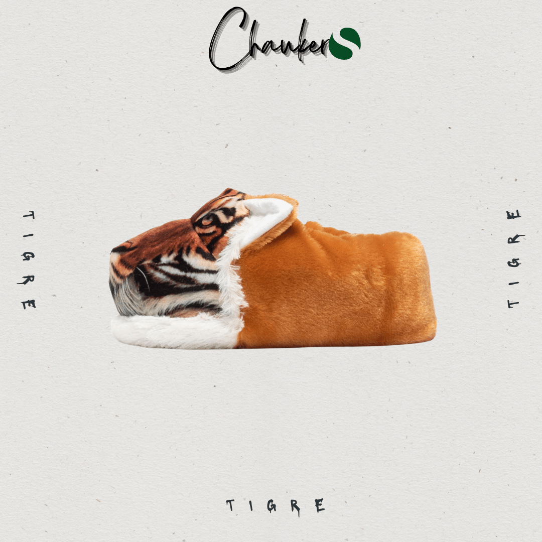 - Tête de Tigre Imprimée : Les motifs de tigre imprimés sur le velours ras donnent l’impression d’avoir une véritable tête de tigre au bout des pieds, ce qui plaira à coup sûr aux fans de ces félins majestueux.