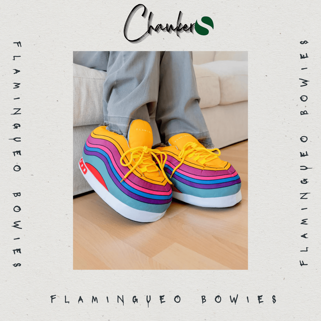 Avec leur motif arc-en-ciel vibrant et coloré, les Chausson Sneakers Baskets Flamingueo Bowies ajoutent une touche de gaieté à votre garde-robe décontractée. Que vous soyez un amateur de couleurs vives ou que vous recherchiez simplement un moyen de mettre de la joie dans votre journée, ces chaussons sont un choix parfait. Mais Si vous êtes fan du style Vans Slip-On, les Chaussons Sneakers Baskets Flamingueo Slip-On seront votre nouveau coup de cœur.