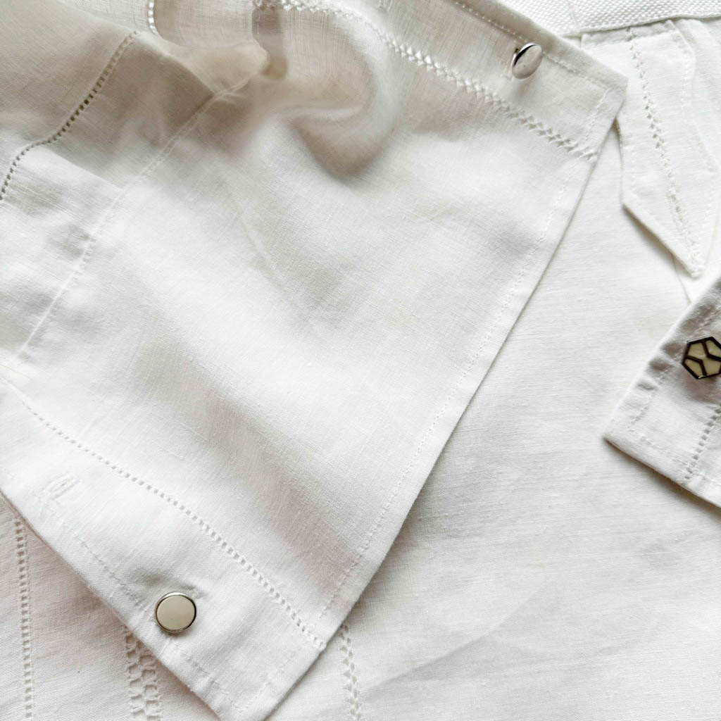 Chemise coton Plastron drap brodé blanc