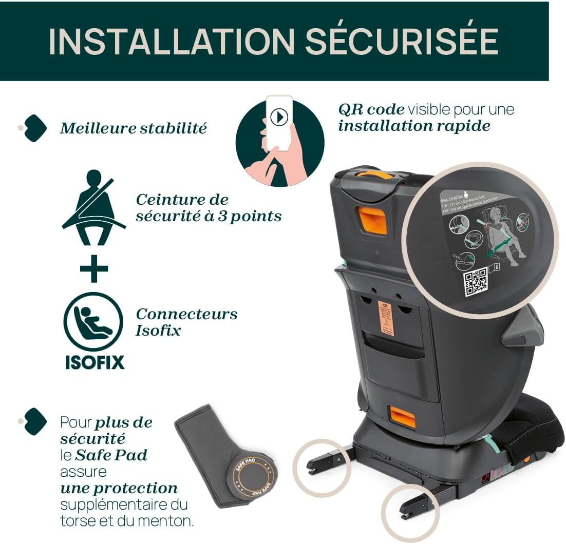 Offrez à votre enfant un voyage en toute sécurité avec le siège auto Chicco Fold&Go, homologué i-Size, alliant une installation facile via Isofix et une protection latérale renforcée, tout en garantissant un confort optimal grâce à son design ergonomique et ses multiples réglages.