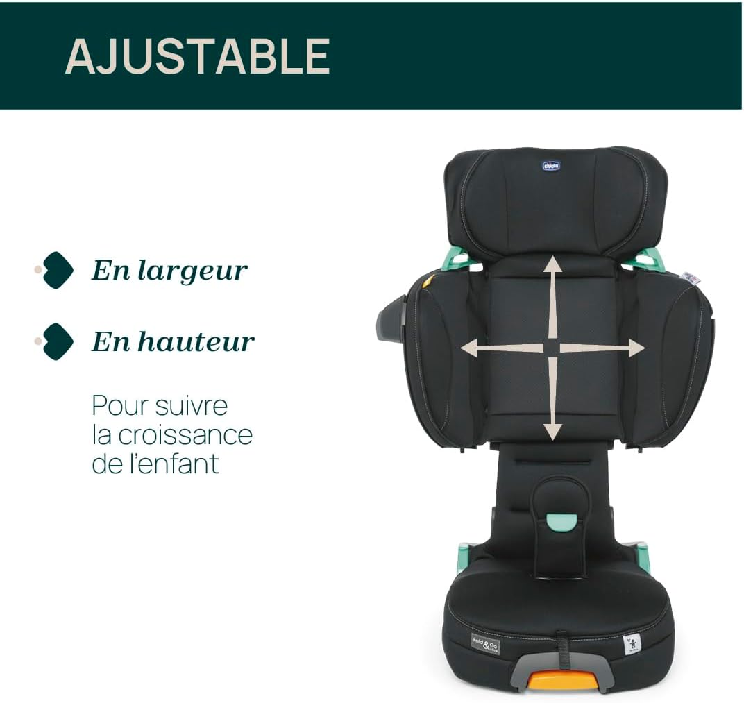 Conçu avec des matériaux de haute qualité, le Chicco Fold&Go allie esthétisme et ergonomie. Sa forme optimisée et ses finitions soignées en noir s’intègrent parfaitement à l’intérieur de votre véhicule. Grâce à la possibilité de régler indépendamment la hauteur et la largeur du dossier, il s’adapte parfaitement à la morphologie de votre enfant, offrant ainsi un soutien adéquat à chaque étape de sa croissance.