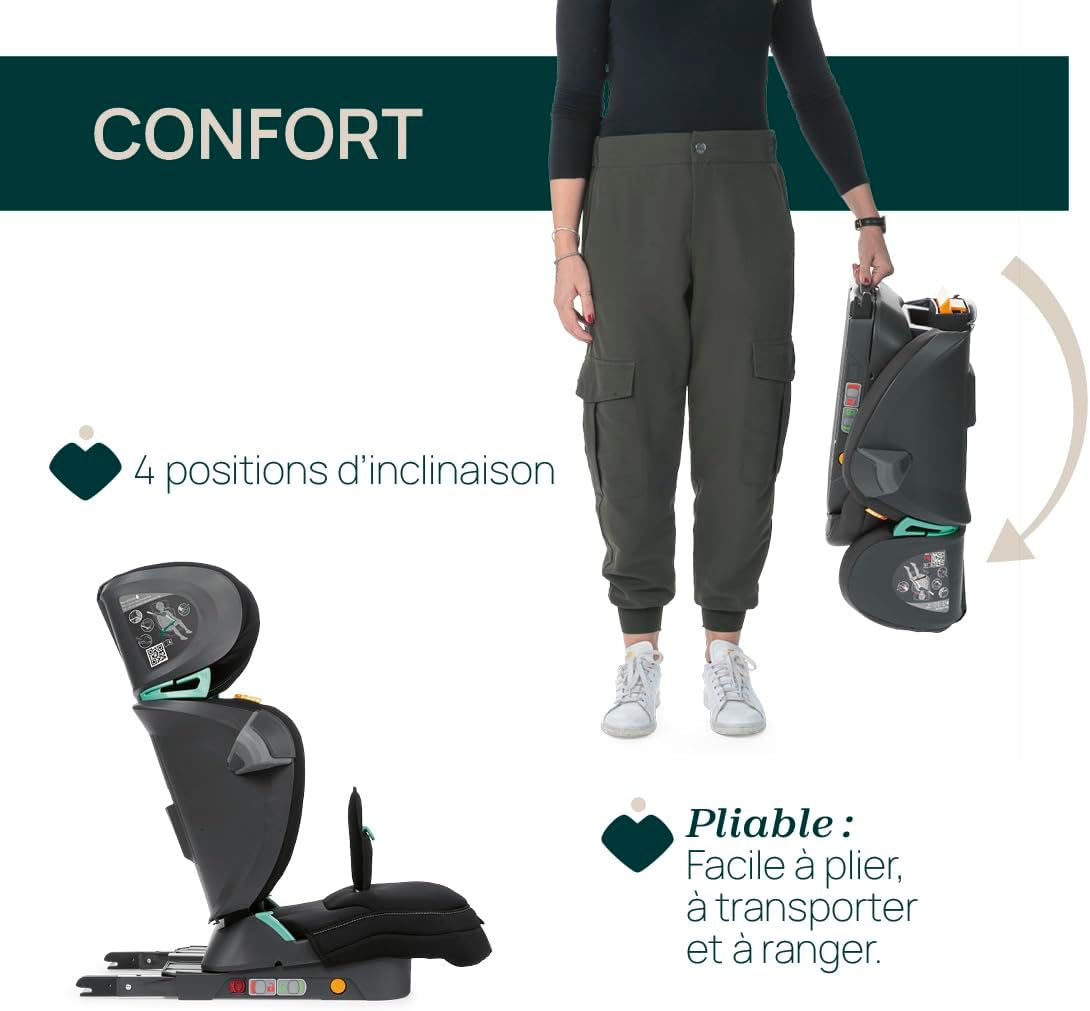Chicco Fold&Go i-Size Siège Auto 15-36 kg – Groupe 2/3, Pliable, Noir