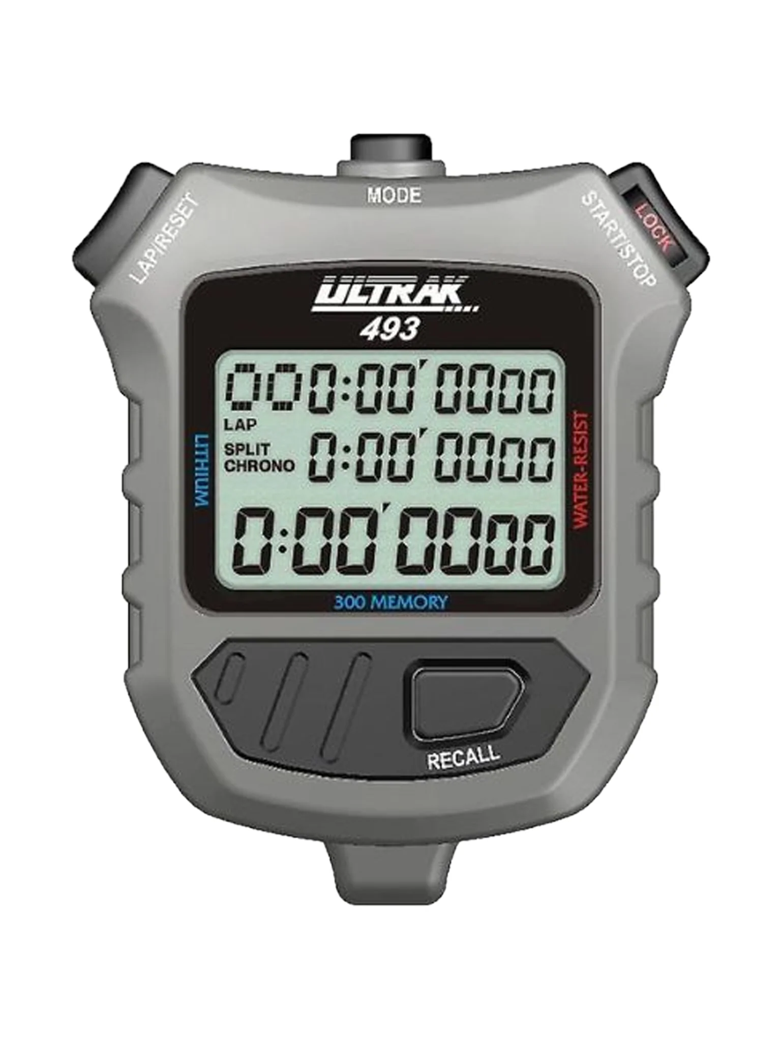 Idéal pour les nageurs et nageuses qui s’entraînent régulièrement, le chronomètre Ultrak 493 offre de nombreux modes et fonctions :