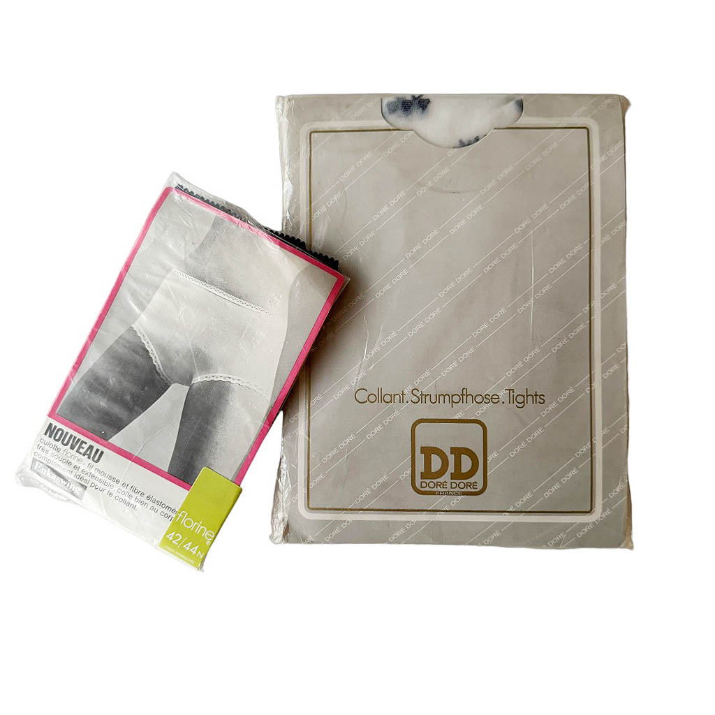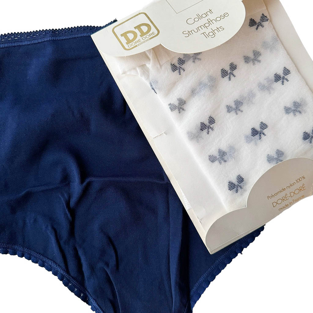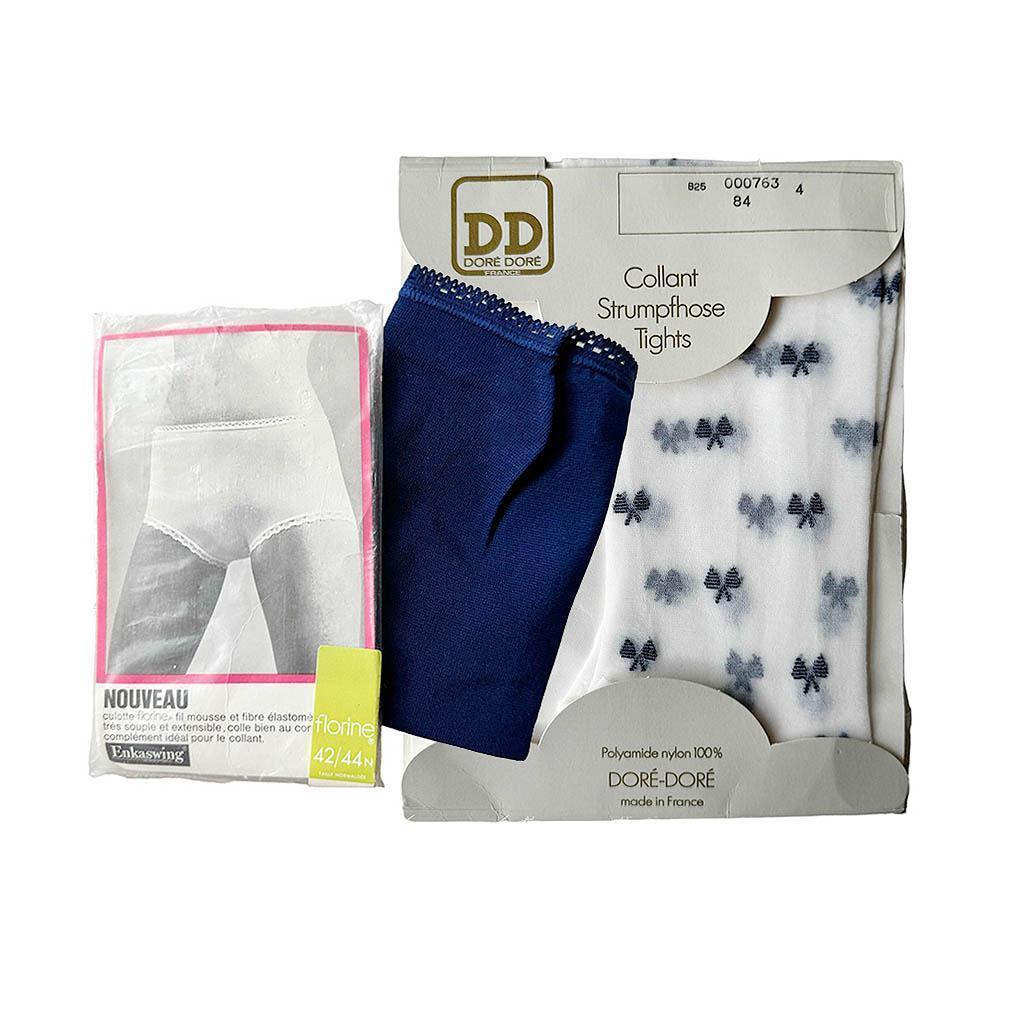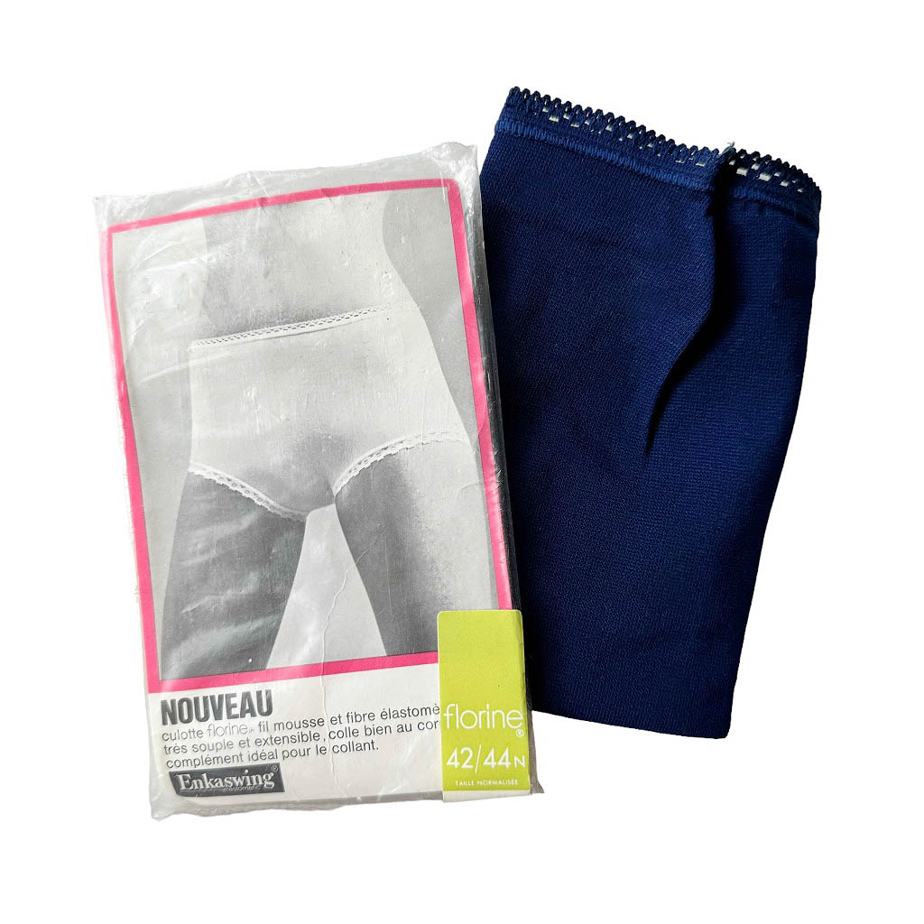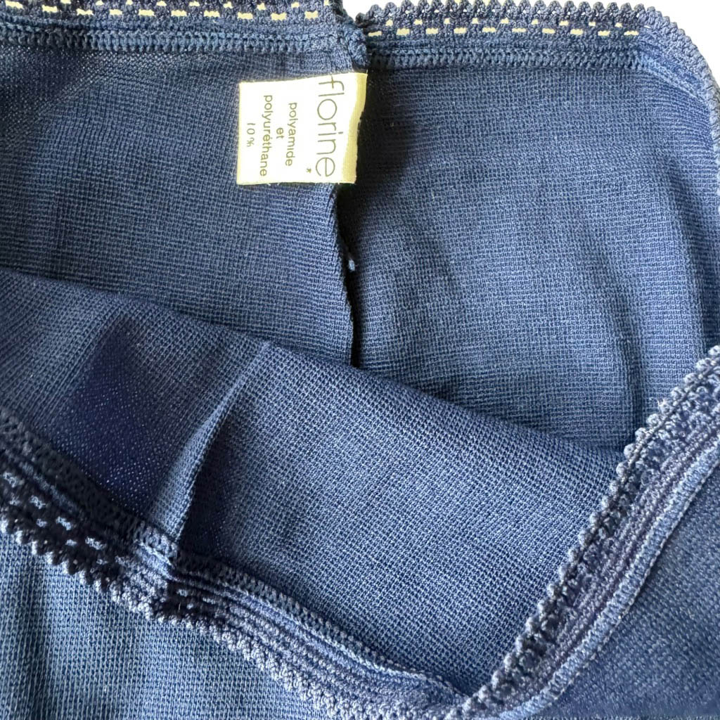 Collants DD Culotte Florine marine Elephant Paris Vintage Années 70, coton et synthétique imprimé, Mesures à plat : Epaules 37cm, Poitrine 50cm, Longueur dos sans le col 76cm, Taille 36/38