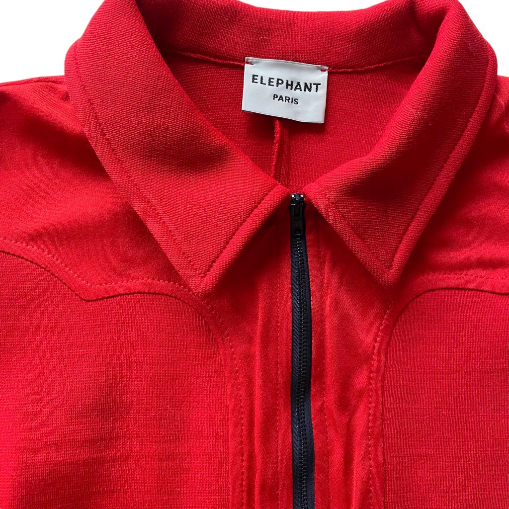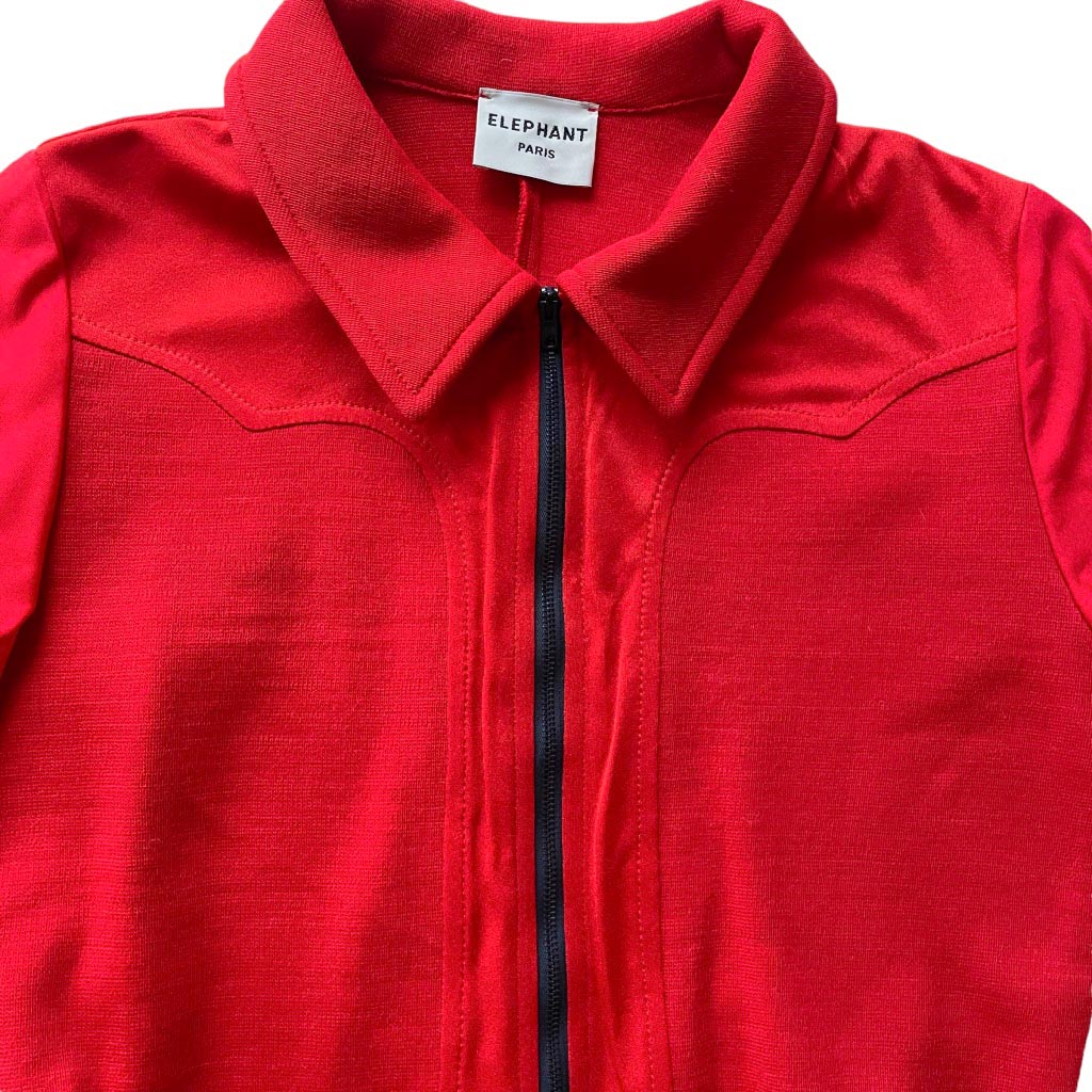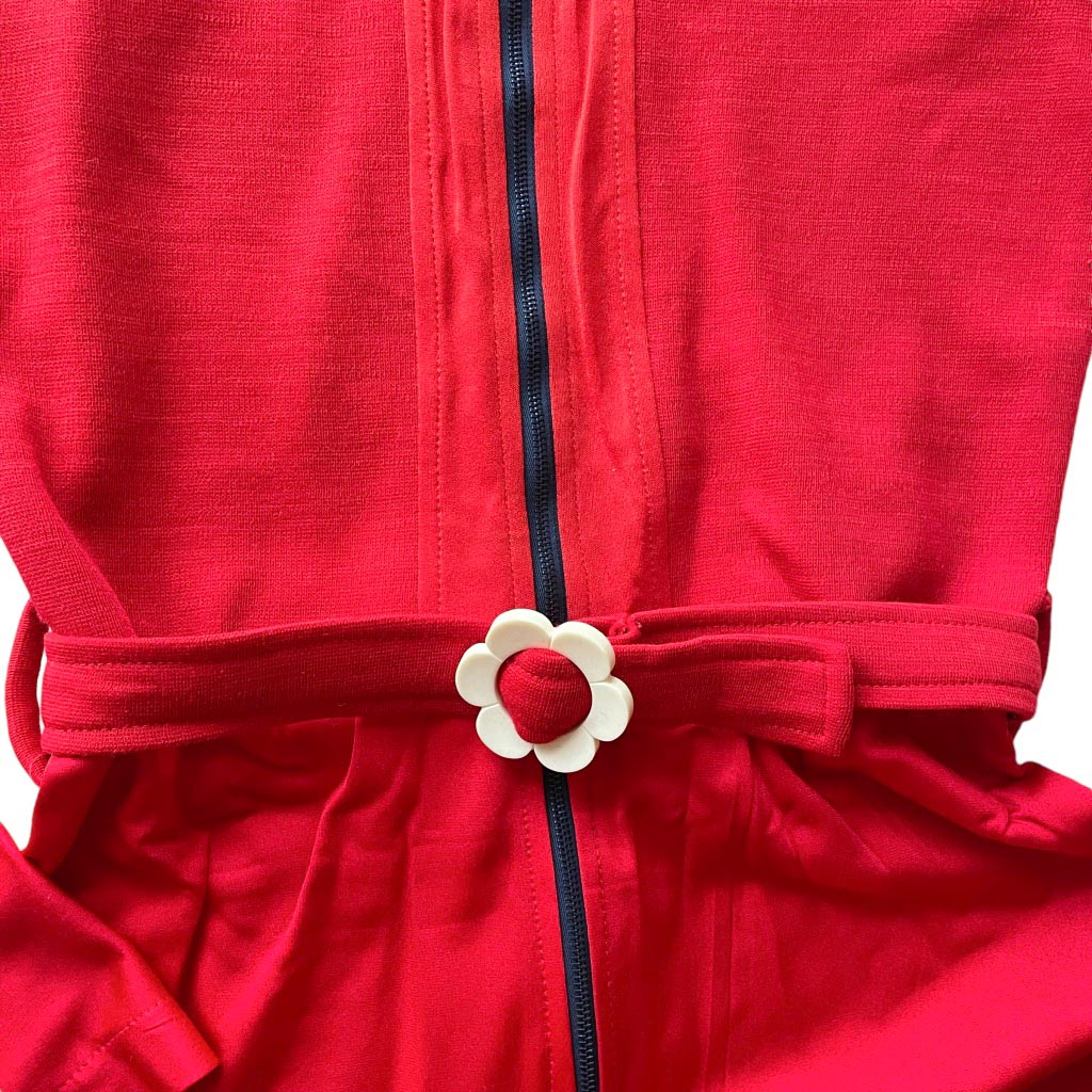 Combinaison short rouge marine Combinaison short en jersey semi-brillant lycra rouge, tissus et fermeture marine neufs d’époque années 70, Elephant Paris Couture Travail artisanal réalisé avec des matériaux anciens, Pièce unique Made in France