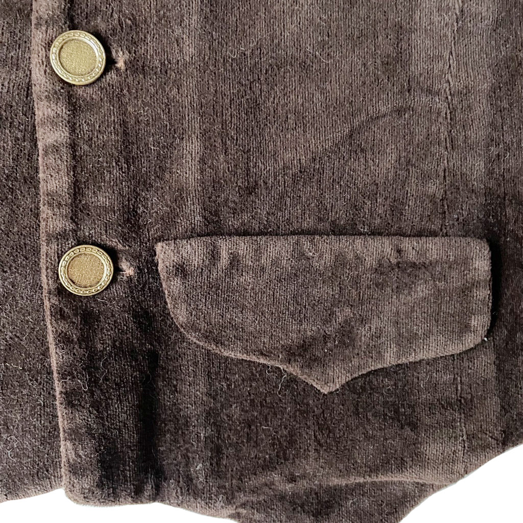 Costume enfant velours lisse Mesures à plat : Gilet : Epaules 27cm, Poitrine 33cm, Taille 31cm, Longueur dos 30cm, Pantalon : Taille 26cm, Hanches 34cm, Longueur entrejambe depuis la taille 25cm, Longueur 80cm Elephant Paris Vintage