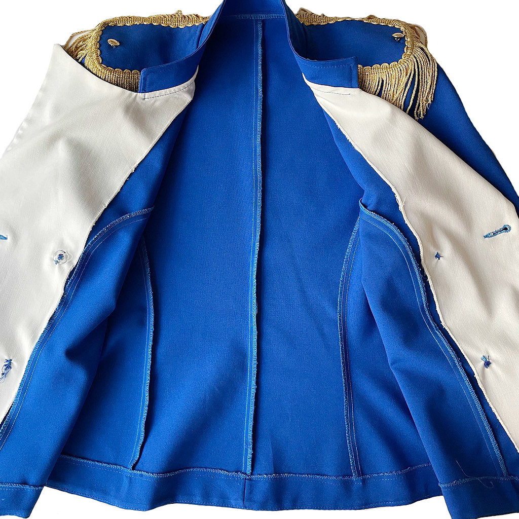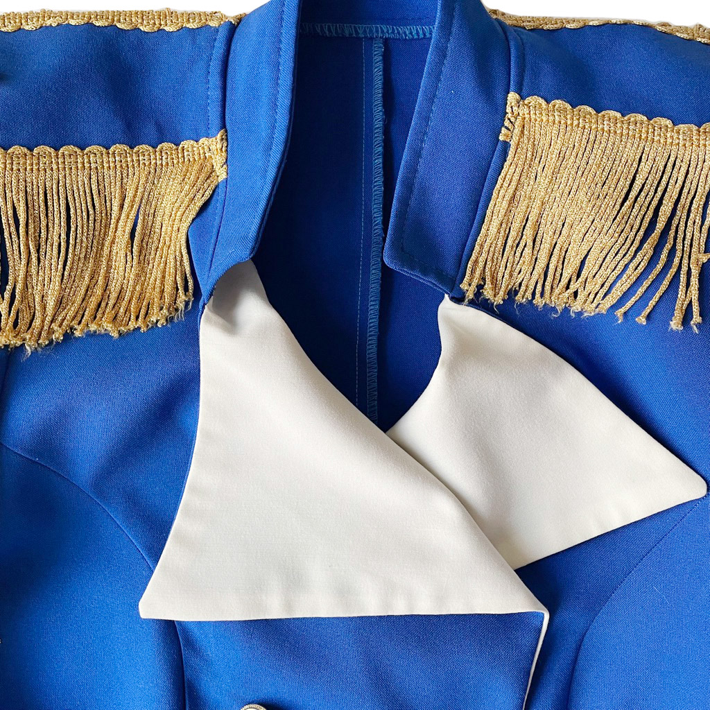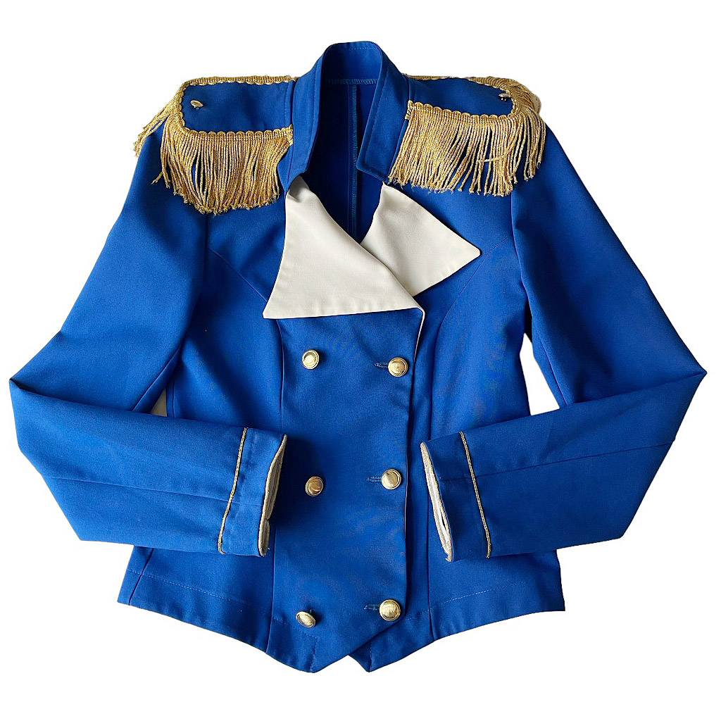 costume majorette vintage années 70, mini jupe en forme bordée d’un liseret doré Elephant Paris Vintage Mesures à plat : Veste : Epaules 35cm, Poitrine 43cm, Taille 36cm, Longueur dos 59cm, Jupe : Taille 36cm, Hanches 45cm, Longueur 46cm, Taille globale 36