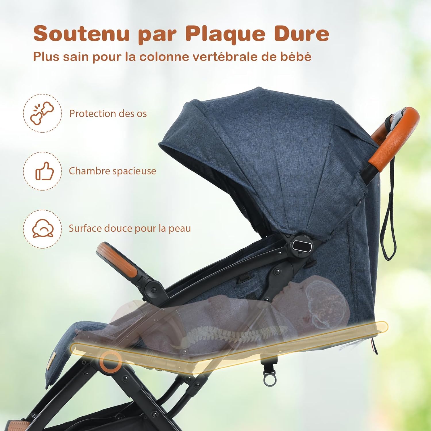 Son design moderne et épuré, disponible dans un élégant coloris bleu marine, se marie parfaitement avec un style de vie urbain. Les finitions soignées et les lignes contemporaines de cette poussette offre une esthétique raffinée, tout en étant fonctionnelle. Chaque détail a été pensé pour répondre aux attentes des parents exigeants, alliant praticité et élégance.