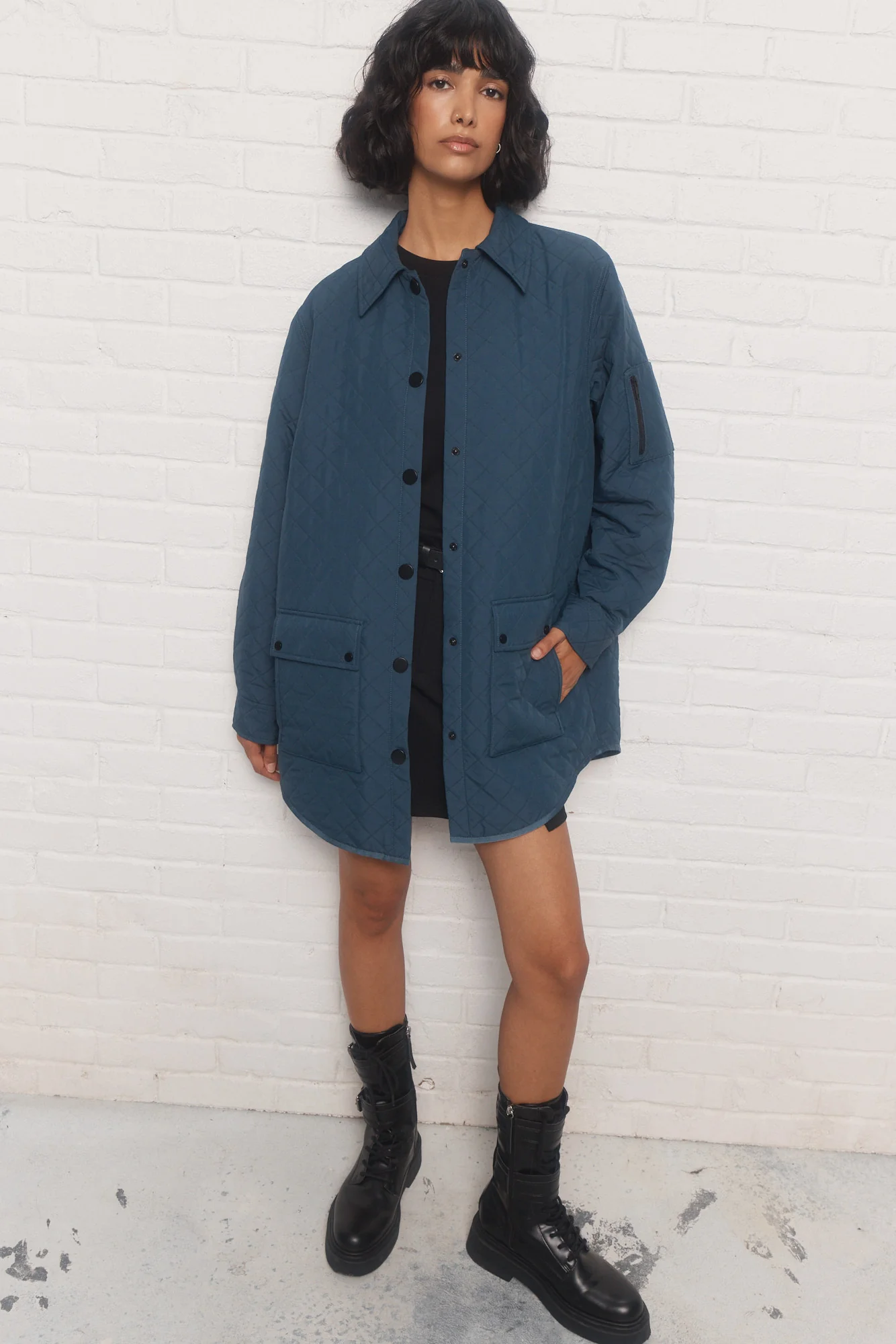 - Poche plaquée à fermeture à glissière sur le bras gauche